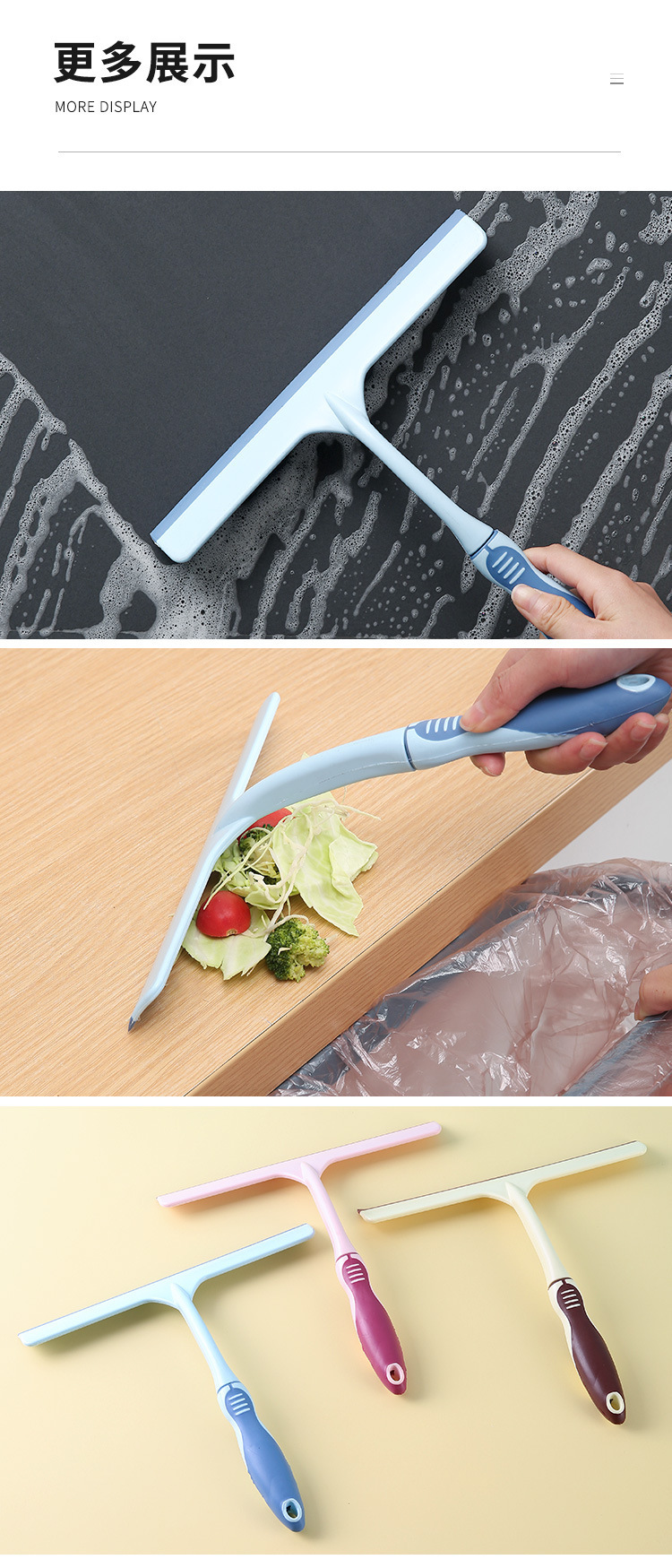 긴 손잡이 유리 창 스크레이퍼 가정용 창 청소 브러시 ​​식탁 욕실 와이퍼 양면 부드러운 고무 유리 스크레이퍼
