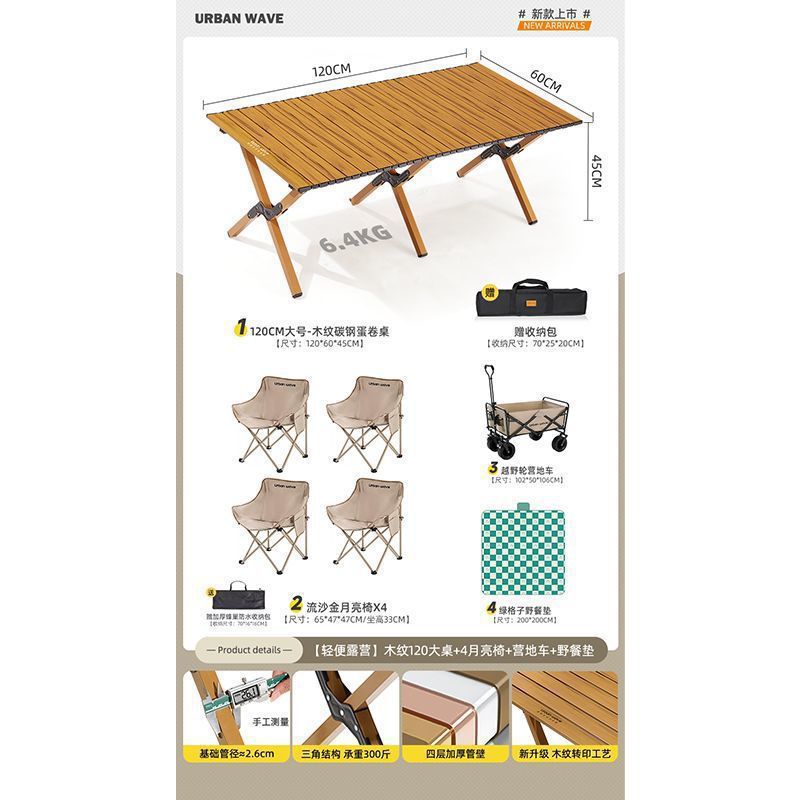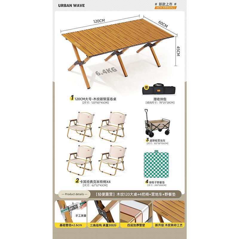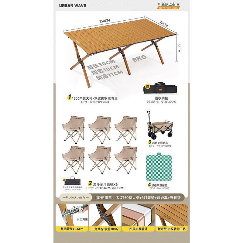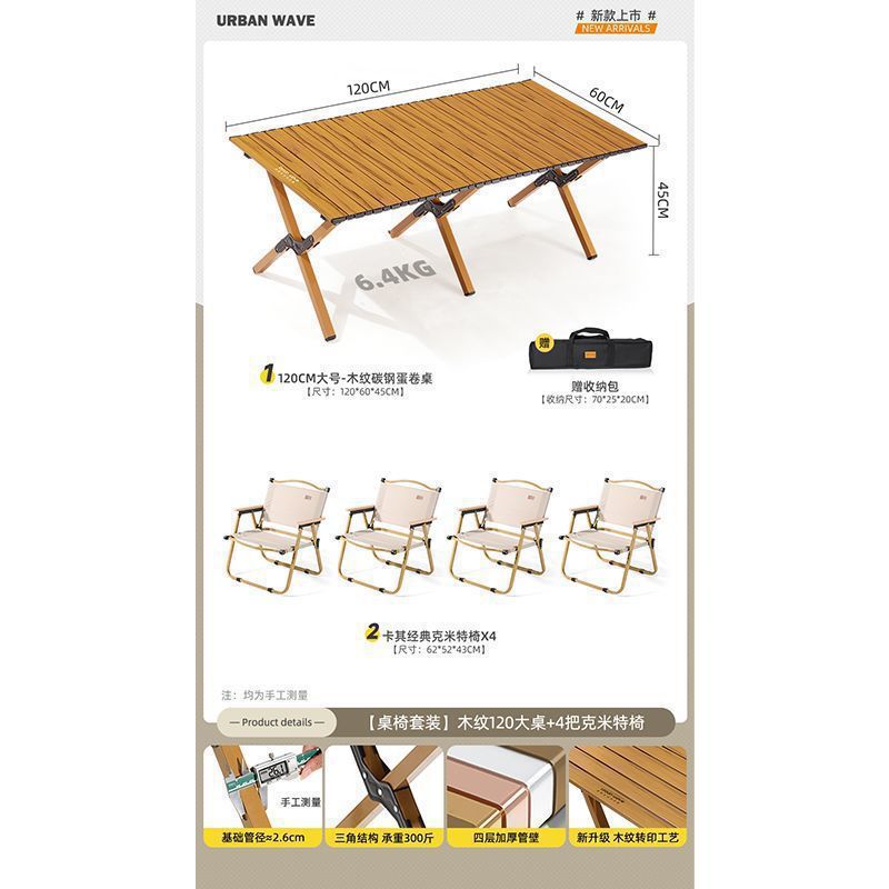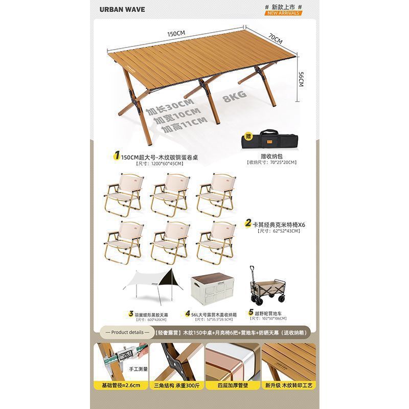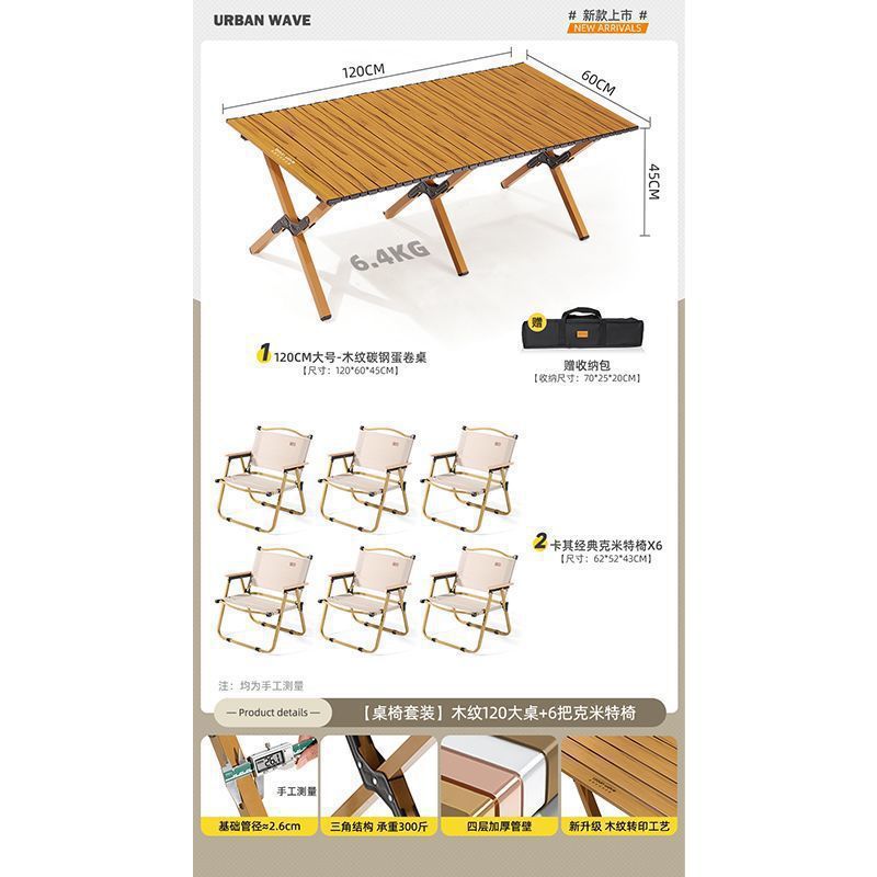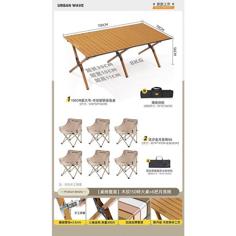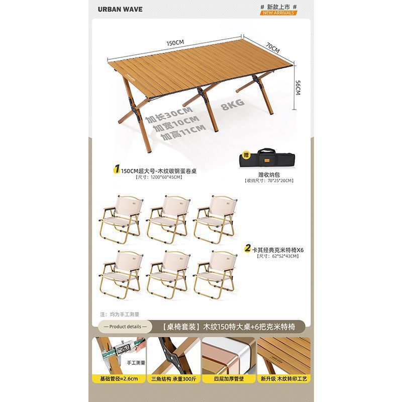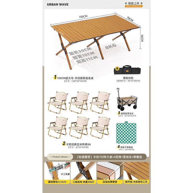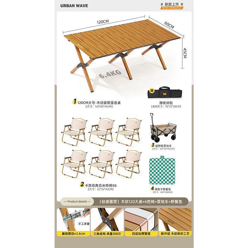 • [경량] 150 나뭇결 테이블 6 달 의자 + 캠핑카에는 피크닉 매트가 포함되어 있습니다. - 크로스 구조丨강한 내하중