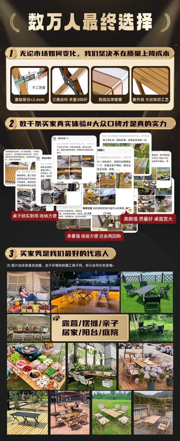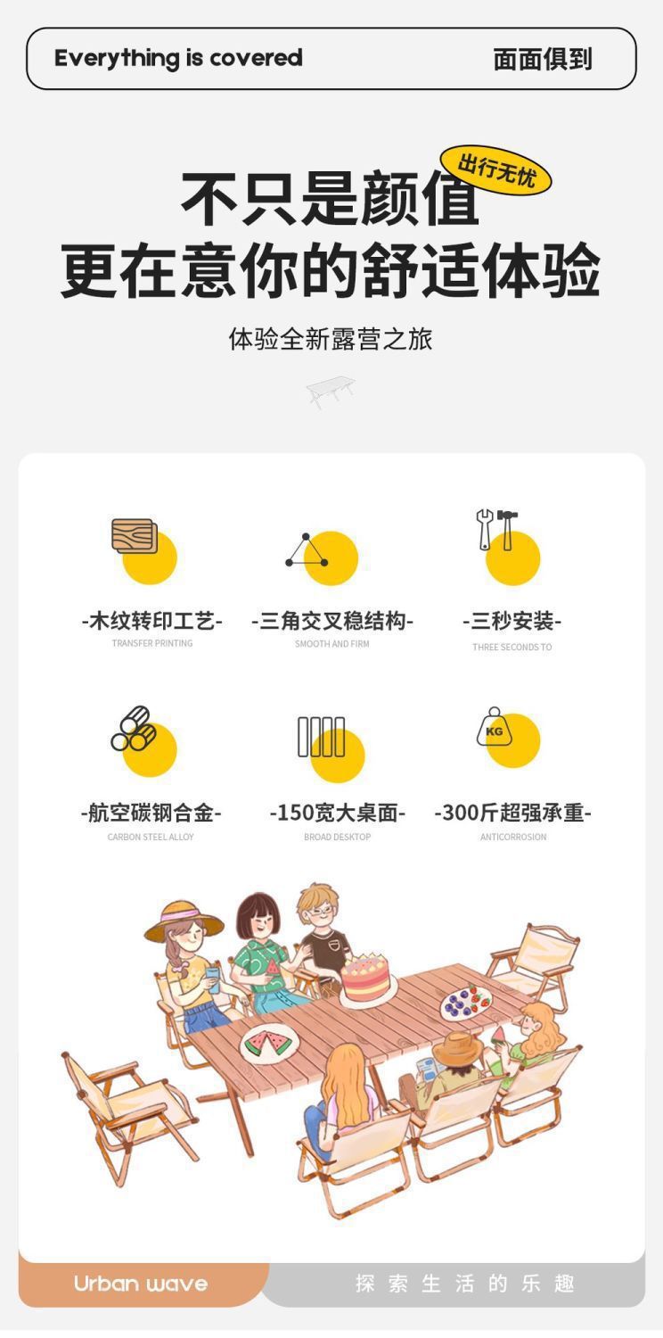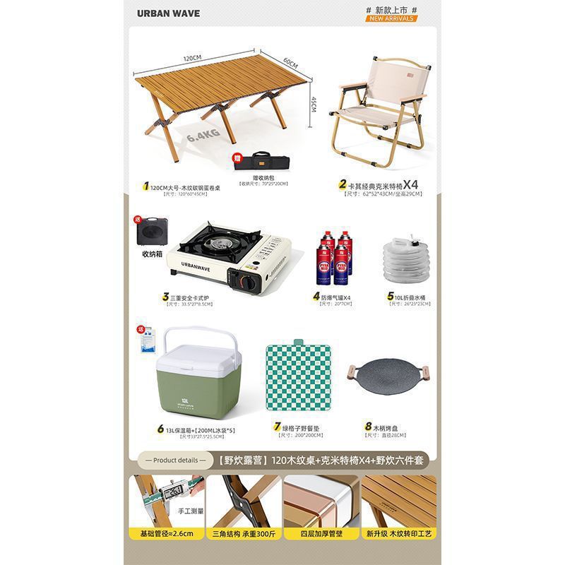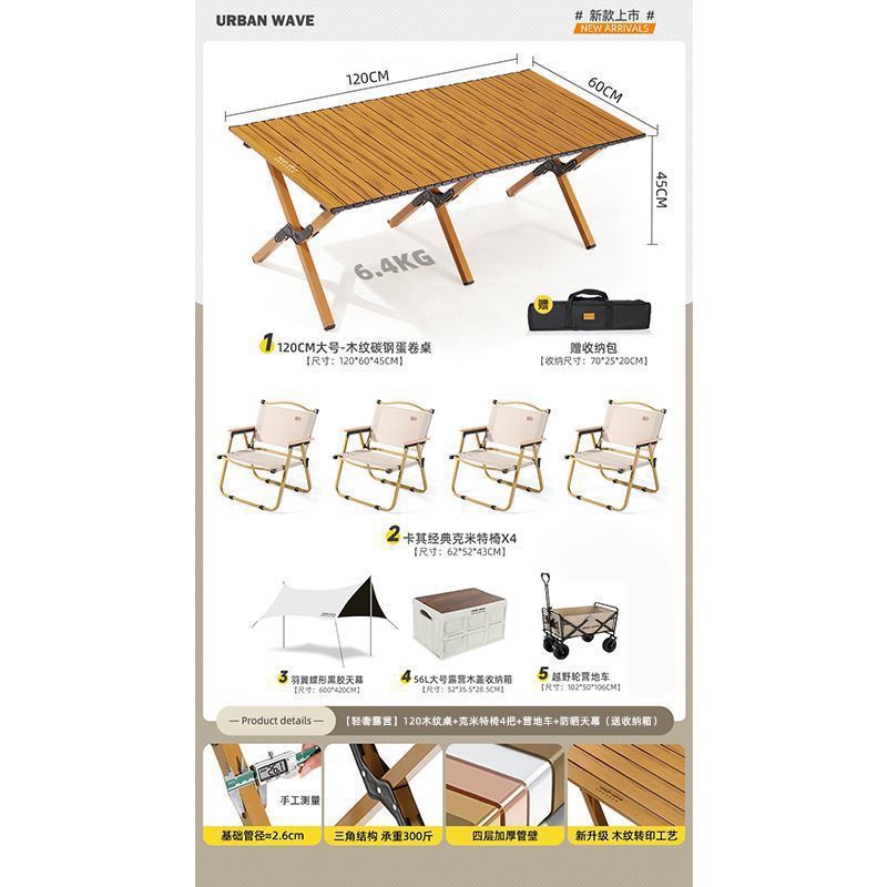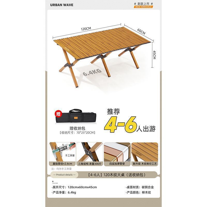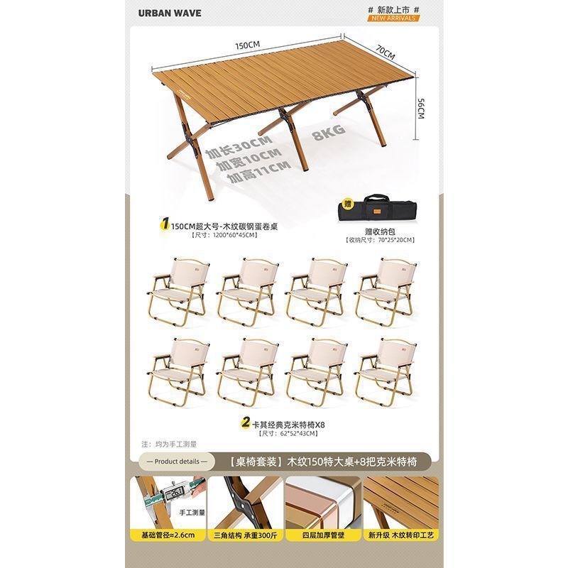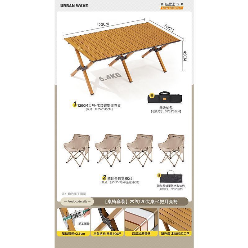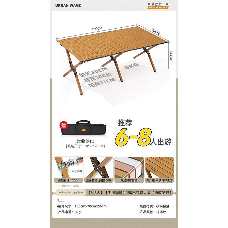 • [경량] 150 나뭇결 테이블 6 달 의자 + 캠핑카에는 피크닉 매트가 포함되어 있습니다. - 크로스 구조丨강한 내하중
