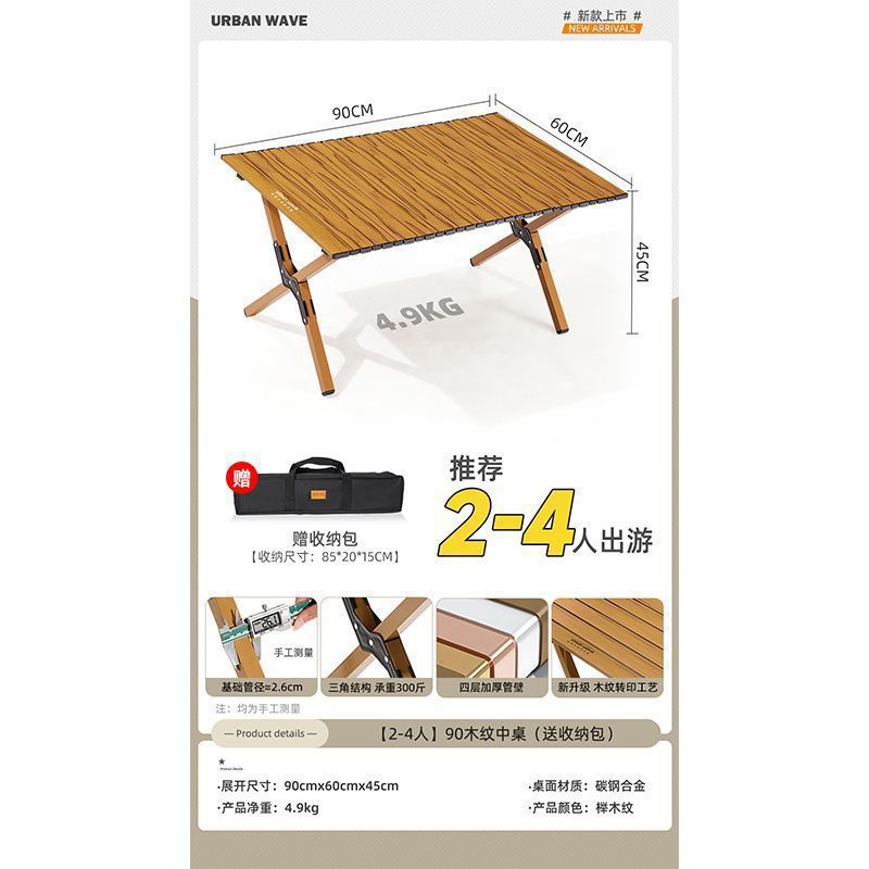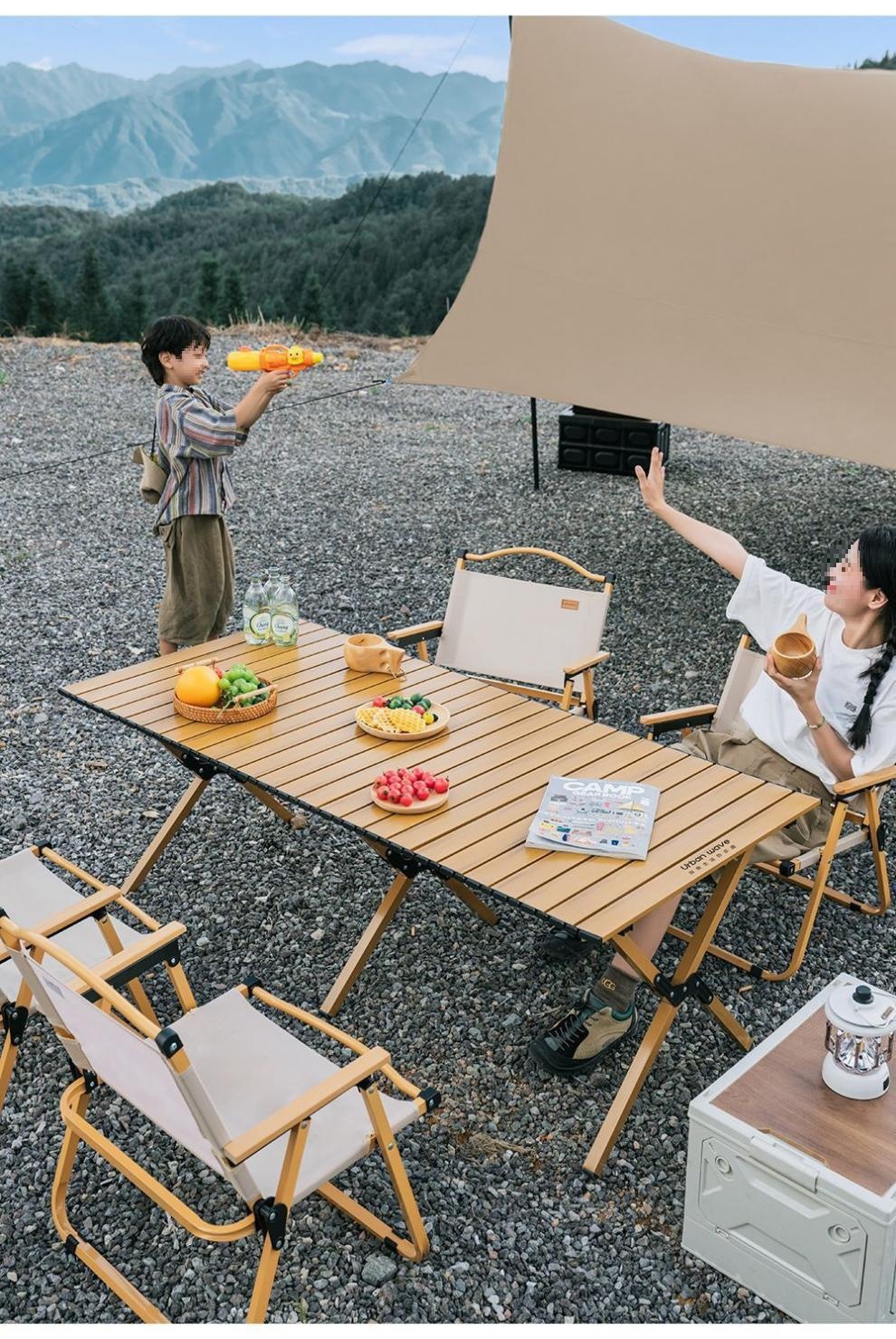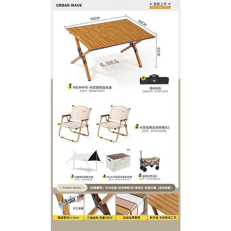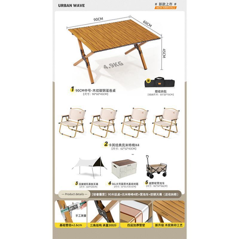 • [라이트 럭셔리] 90 나뭇결 미드 테이블 + 의자 4개 + 캠퍼밴 + 자외선 차단 캐노피 - 크로스 구조丨강력한 내하중