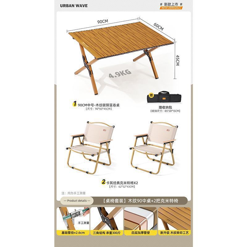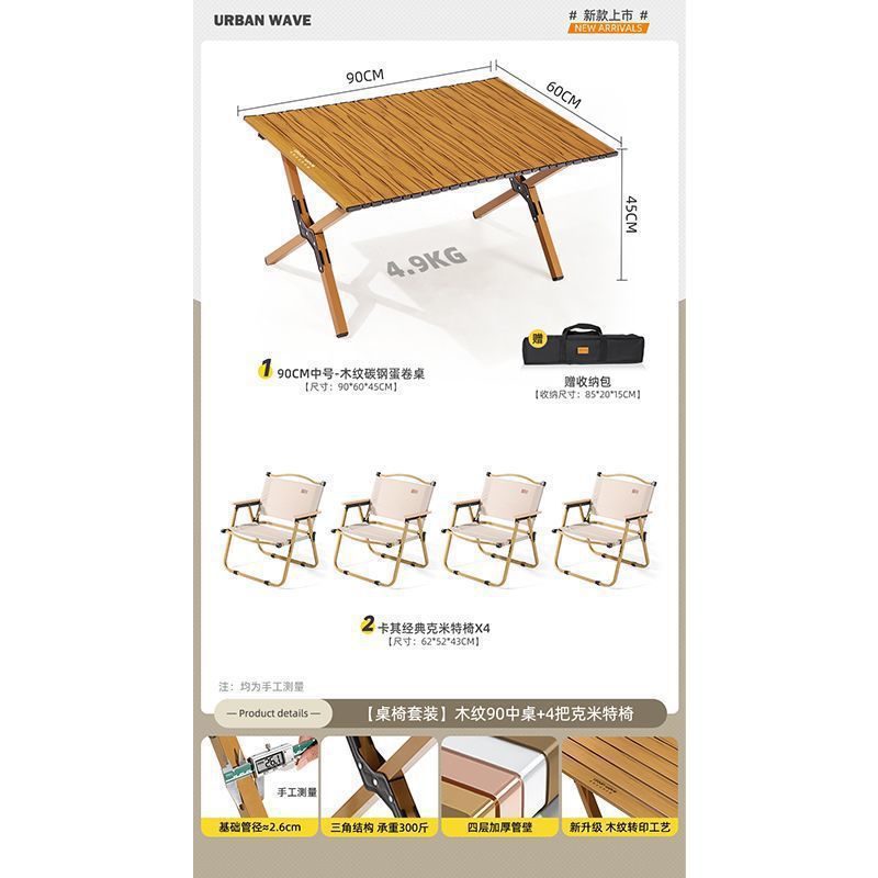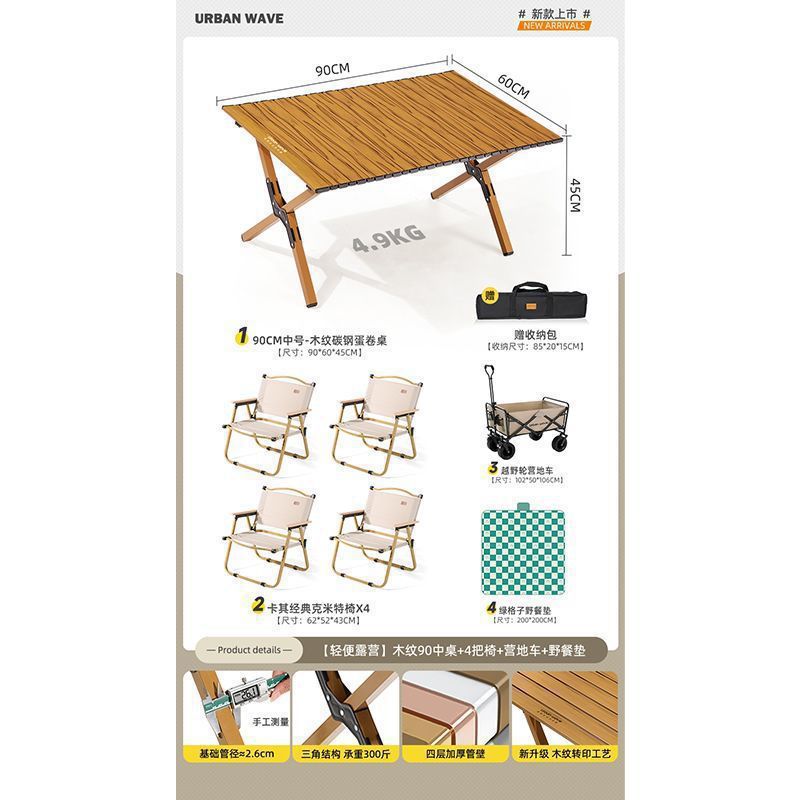 • [경량캠핑] 90 나뭇결 미디엄 테이블 + 4 커밋 체어 + 캠프카 - 크로스 구조丨강력한 내하중