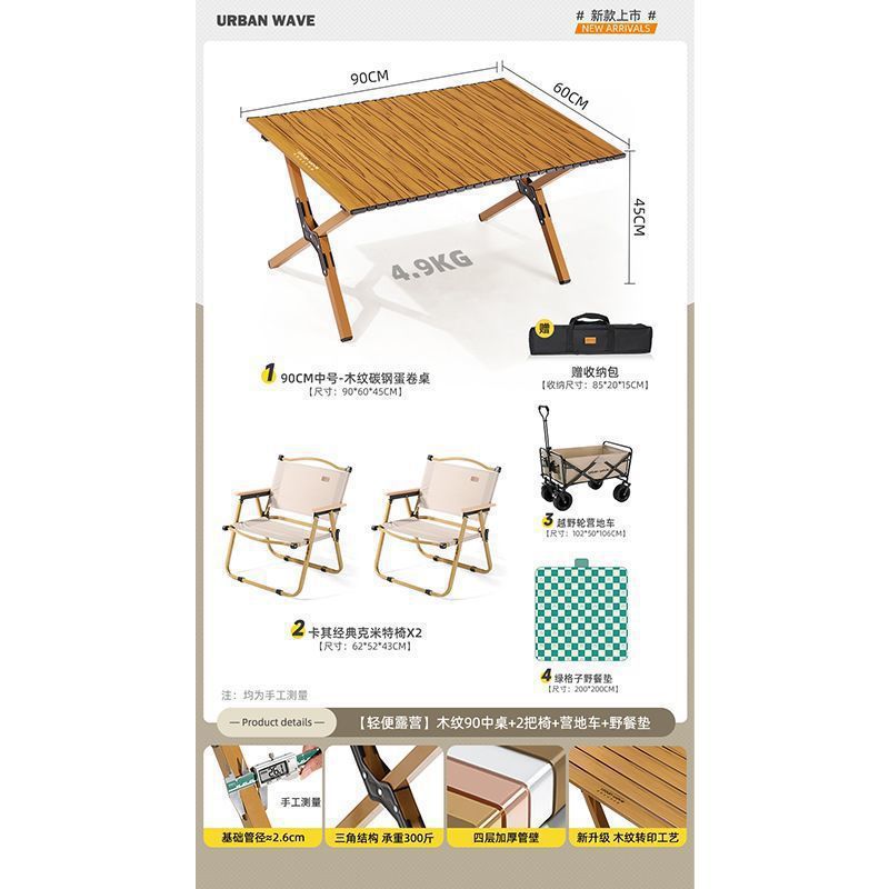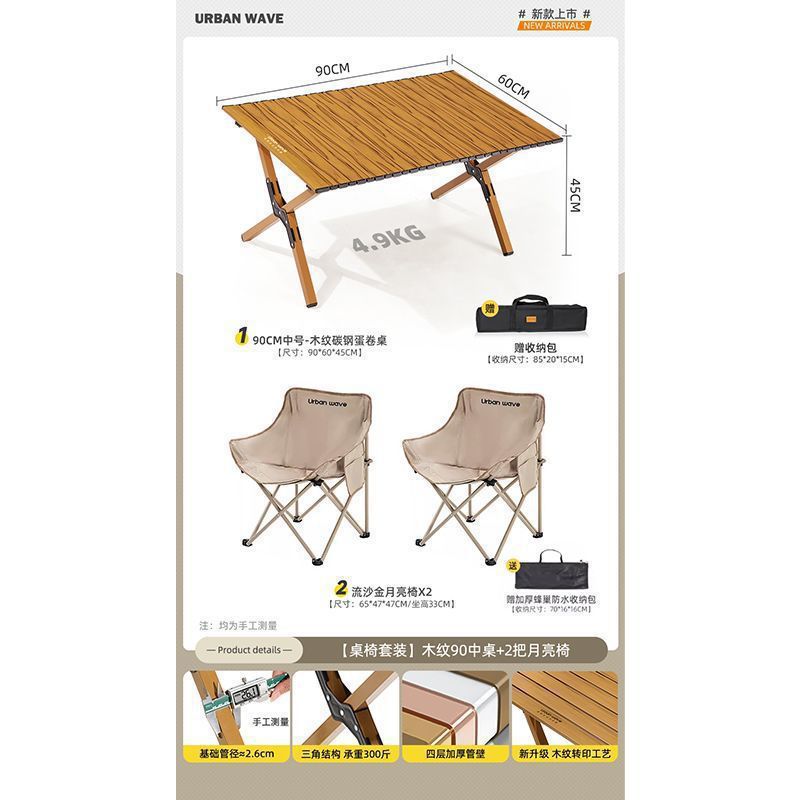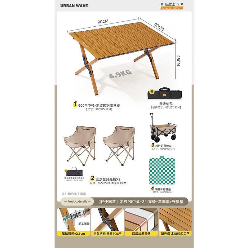 • [경량] 나뭇결 테이블 90개 + 달의자 2개 + 캠핑카 피크닉매트 - 크로스구조丨강력한 내하중