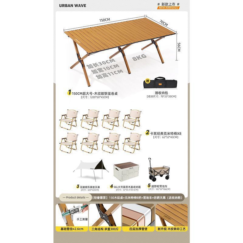 • [가벼운 럭셔리] 대형 테이블 150개, 의자 8개 + 캠핑카 + 캐노피 + 수납박스 - 크로스 구조丨강력한 내하중