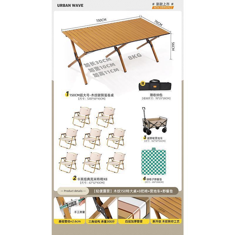 • [경량캠핑] 대형테이블 150개 + 의자 8개 + 캠핑카는 피크닉매트 포함 - 크로스구조丨강력한 내하중