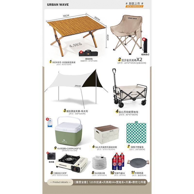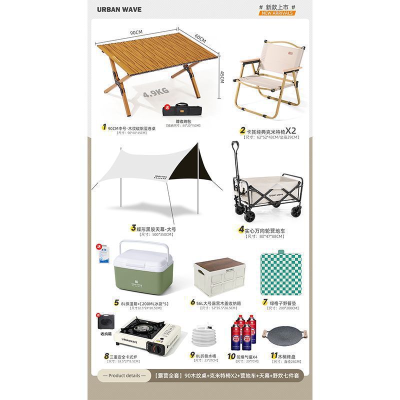 • [라이트 럭셔리] 90 나뭇결 + 의자 2개 + 캠퍼밴 + 캐노피 + 수납함 - 크로스 구조丨강한 내하중