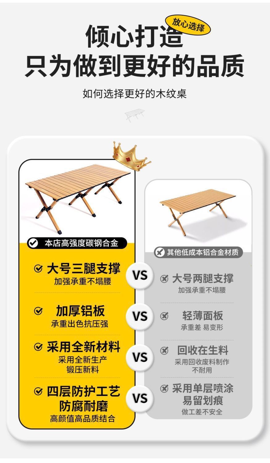 • [가벼운 럭셔리] 150 나뭇결 테이블 6개의 달 + 캠핑카 캐노피 보관함 - 크로스 구조丨강력한 내하중