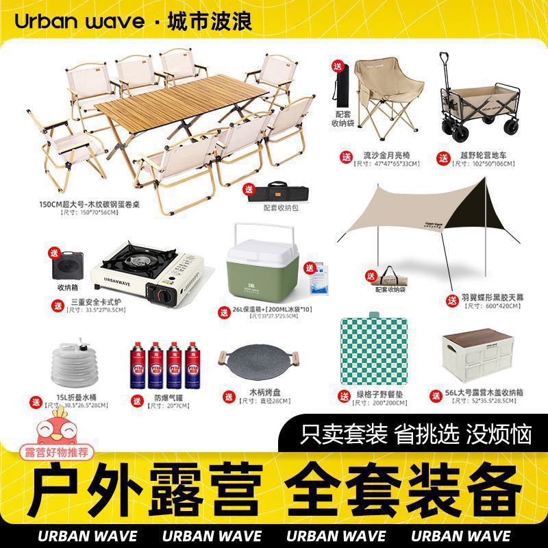 • [가벼운 럭셔리] 대형 테이블 150개, 의자 6개 + 캠핑카 + 캐노피 + 수납박스 - 크로스 구조丨강력한 내하중