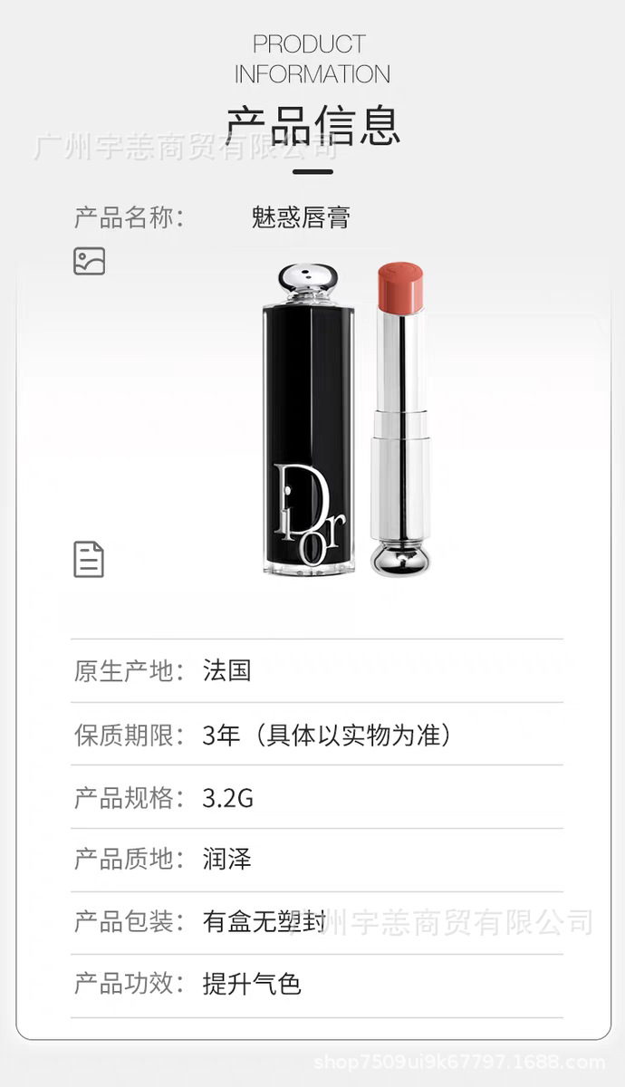 정품 오리지널 유럽 및 미국 Di Jia 매력 립스틱 미러 블랙 튜브 래커 립스틱 색상 변경 립밤 수분 공급 및 보호 립스틱스토어 가기