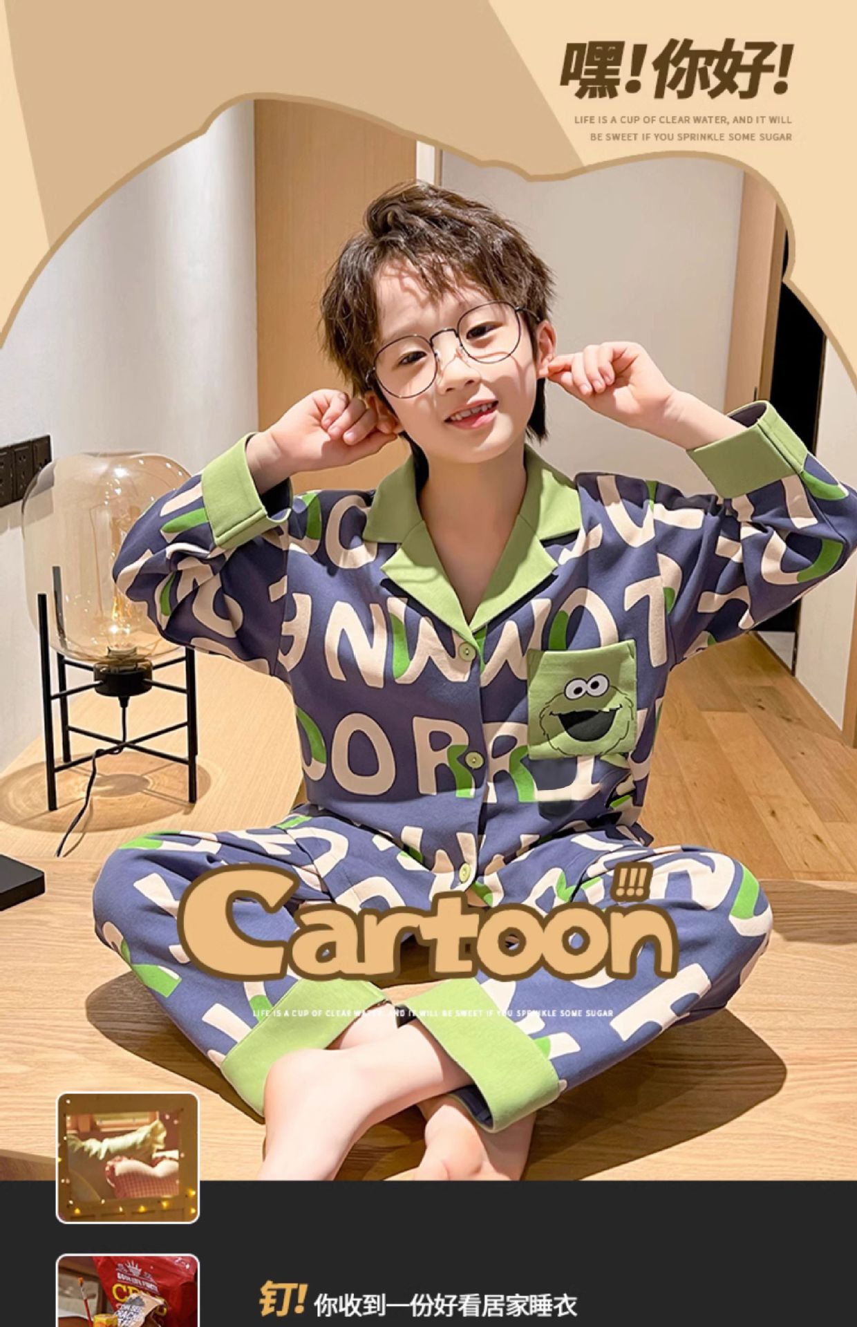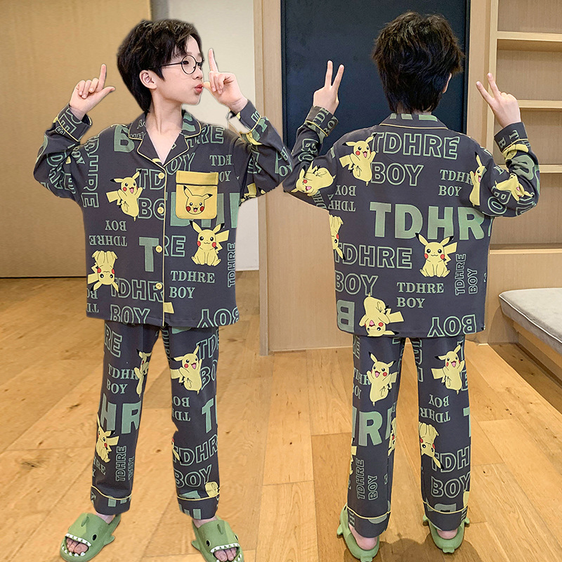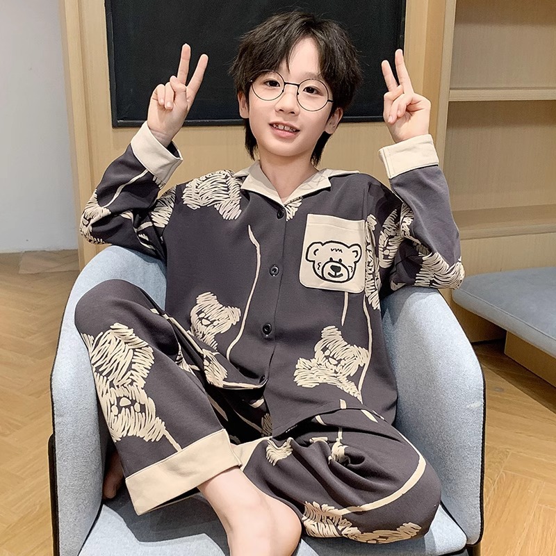 아동 잠옷, 남아 봄, 가을 신상 청소년 긴팔 가디건 양복, 얇은 학생 바지, 겉옷, 가정복스토어 가기