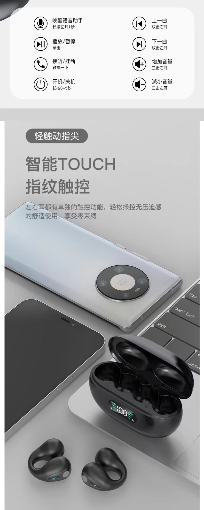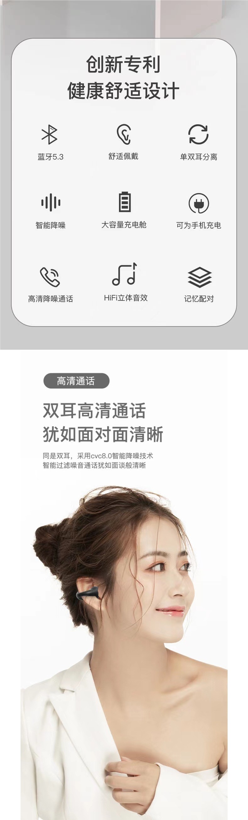 진정한 골전도 클립온 블루투스 헤드셋 무선 2025 새로운 양이형 고가치 초선명 음질 초장기 대기스토어 가기