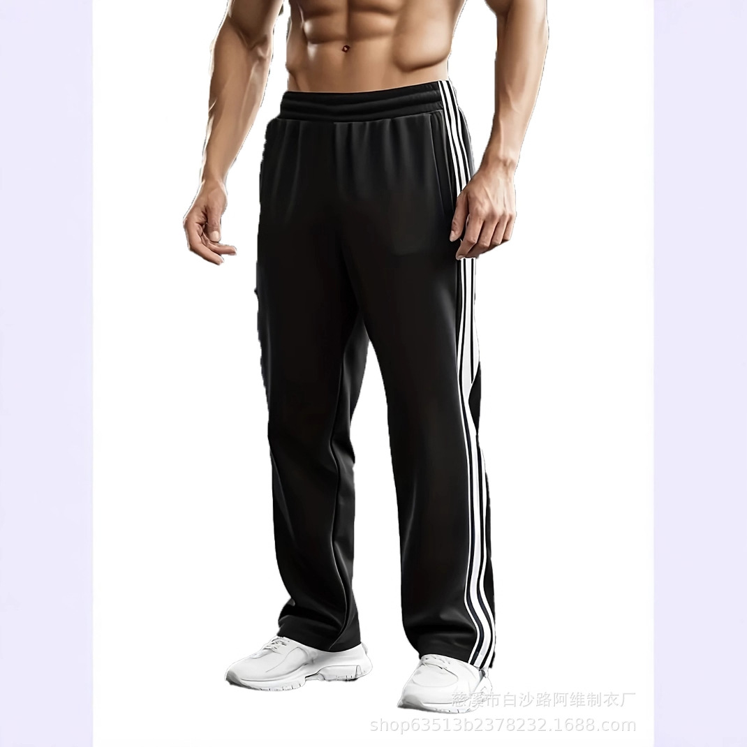 새로운 인기 남성 대외 무역 유럽과 미국의 봄 여름 새로운 스타일 스트라이프 스트레이트 팬츠 미국 루즈 캐주얼 스포츠 바지스토어 가기