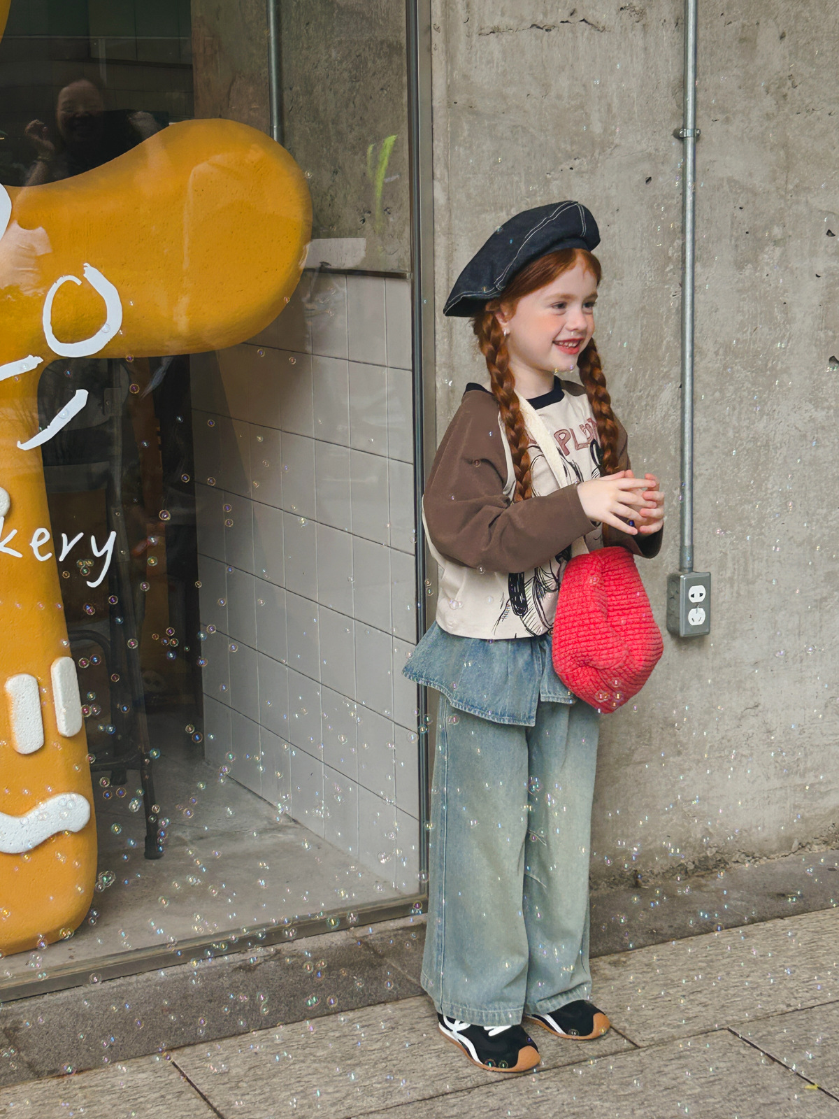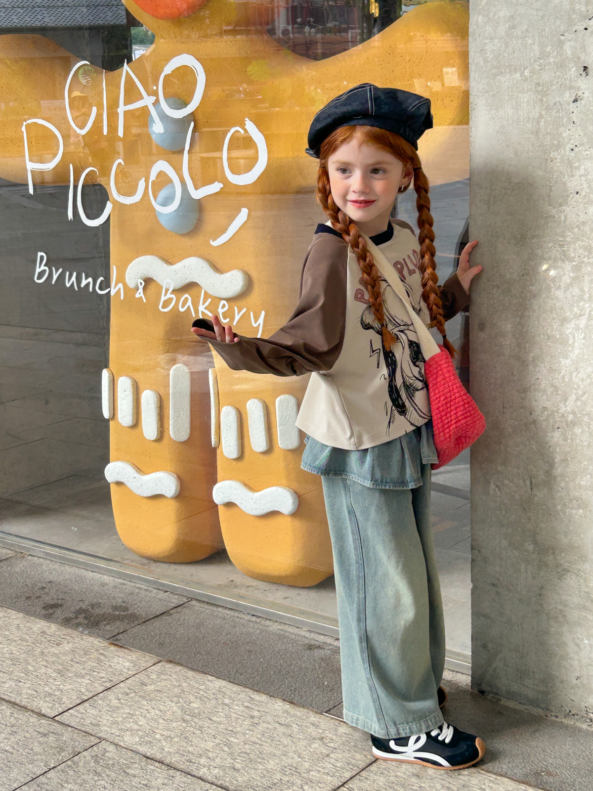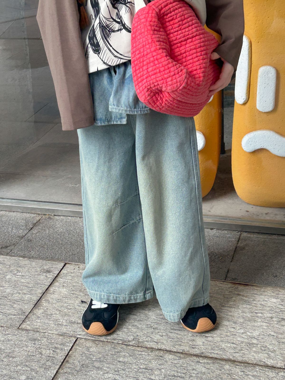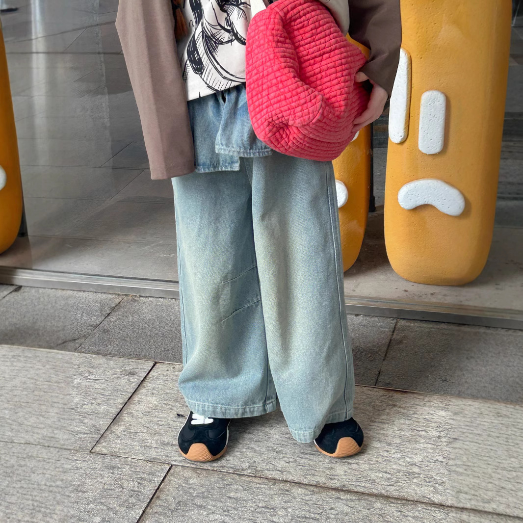 2025 새로운 가을 여자 패션 다목적 솔리드 컬러 레이스 청바지 가짜 투피스 바지 스커트
