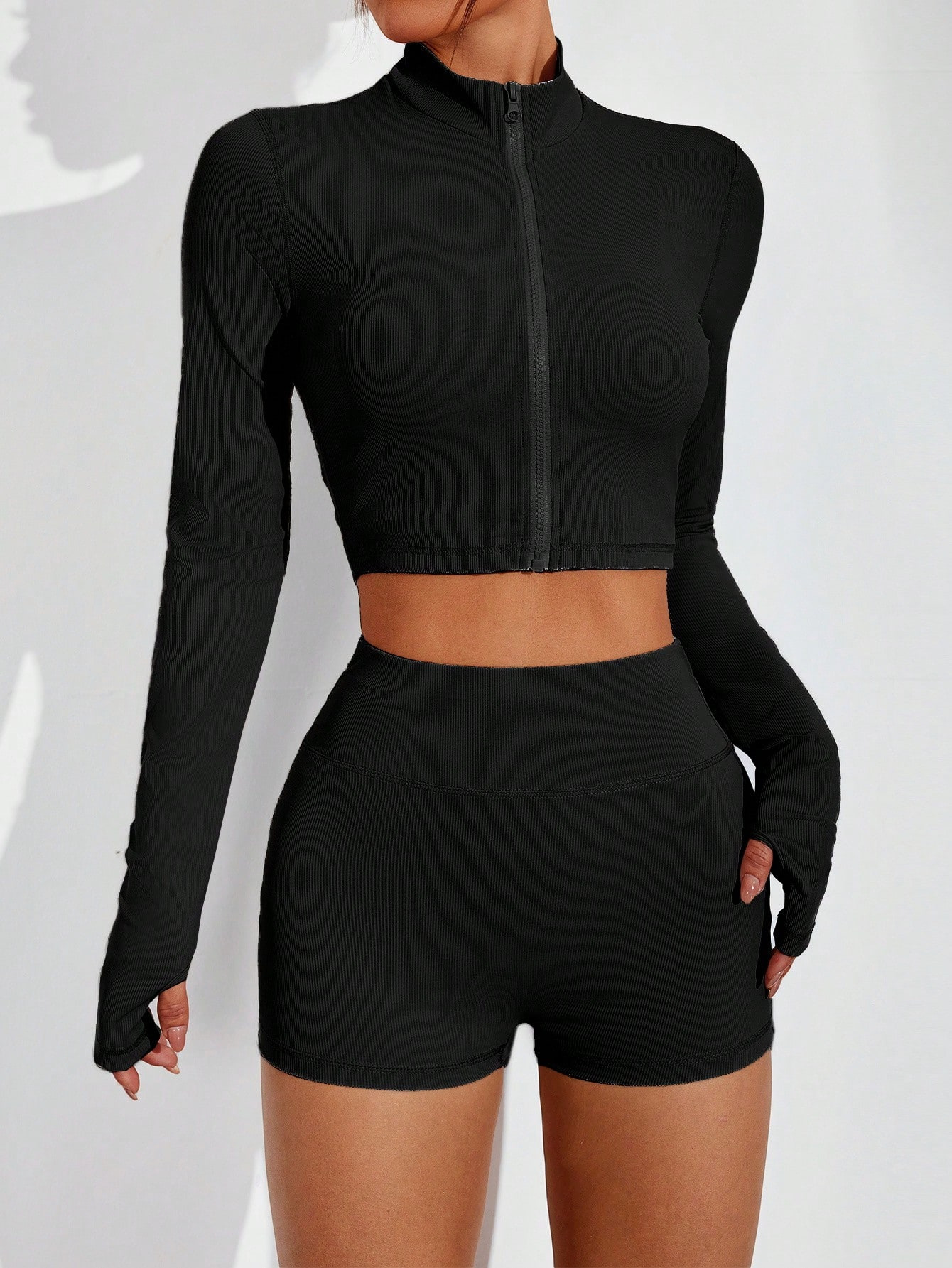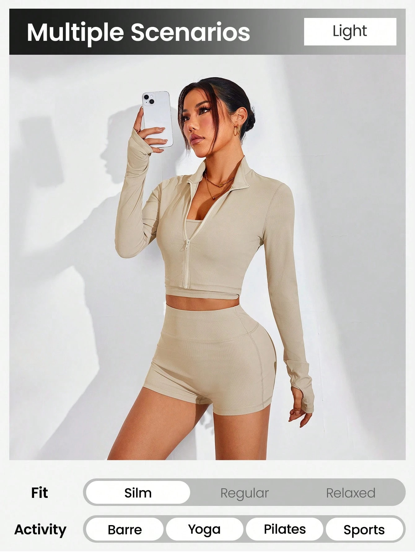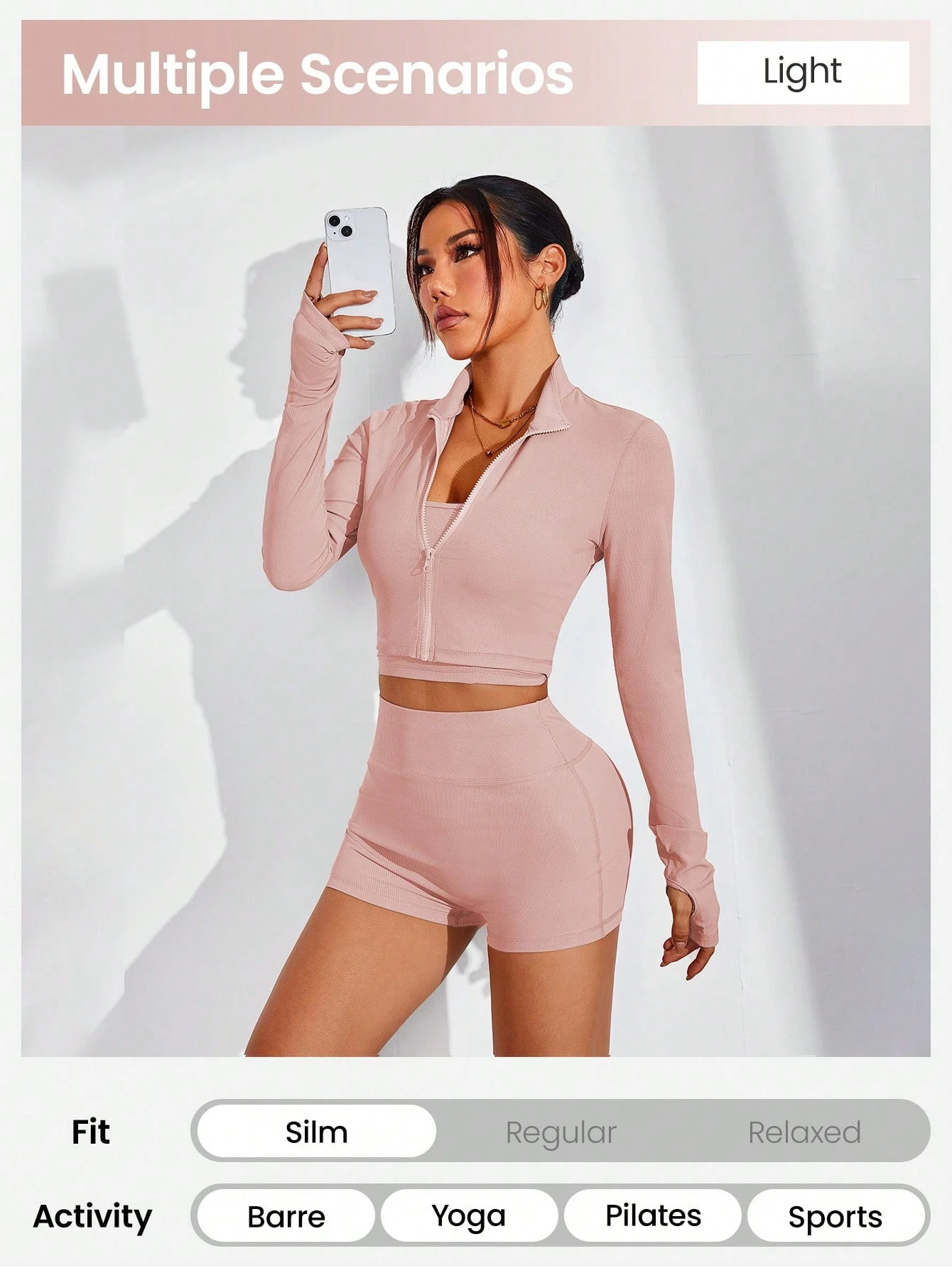 사전 판매 지퍼 야외 달리기 스포츠 요가 재킷 슬리밍 피트니스 긴팔 재킷 소녀 요가 정장