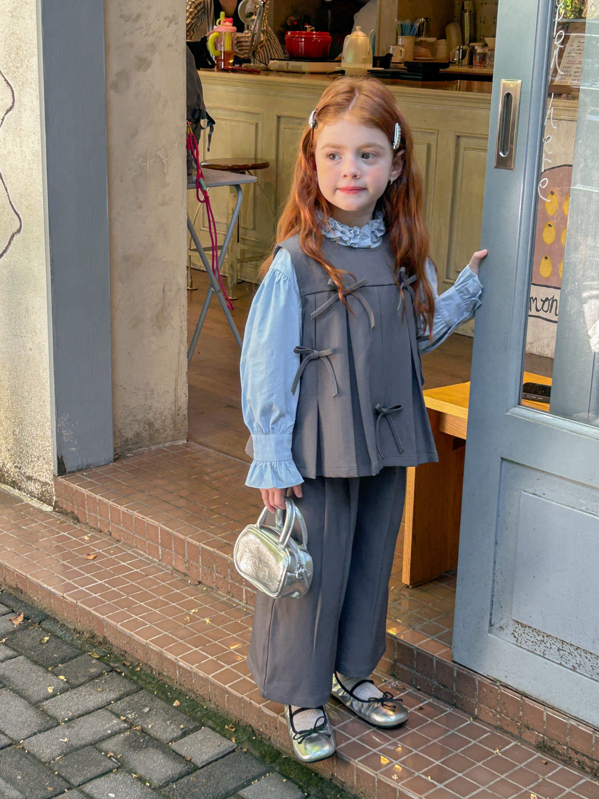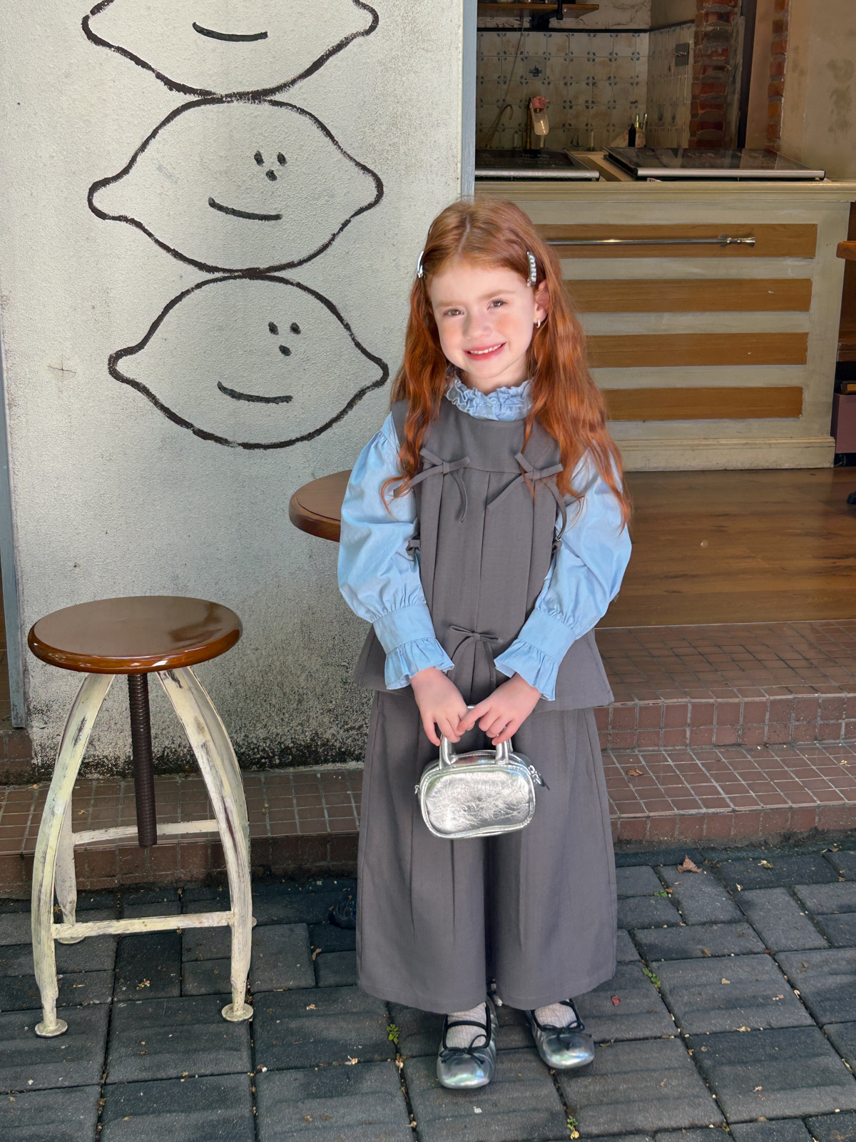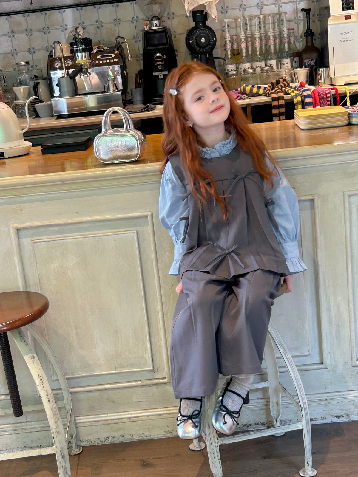 2025 새로운 가을 민소매 베이비돌 탑 소녀의 세련된 보우 슈트 조끼 싱글 조끼 탑