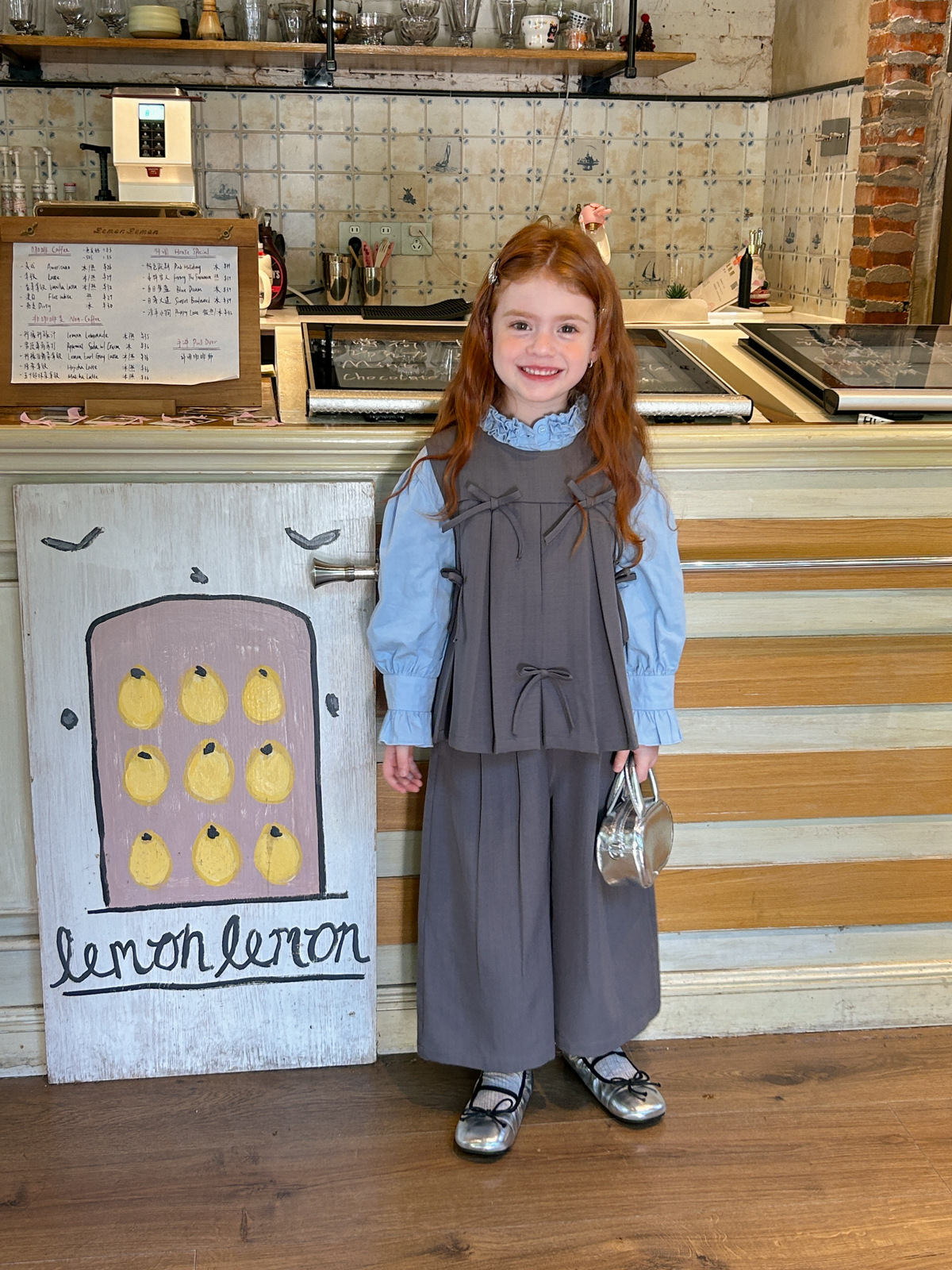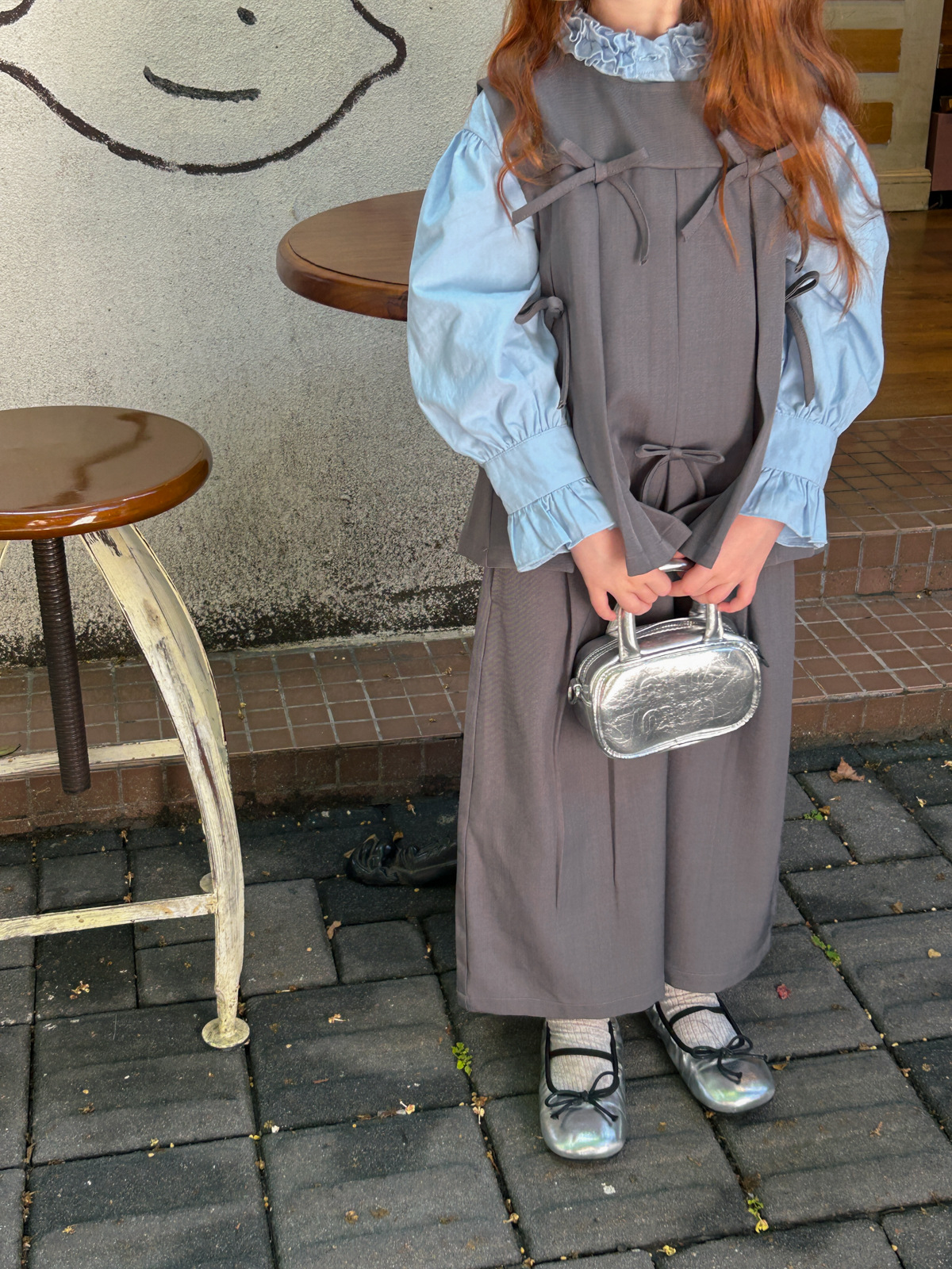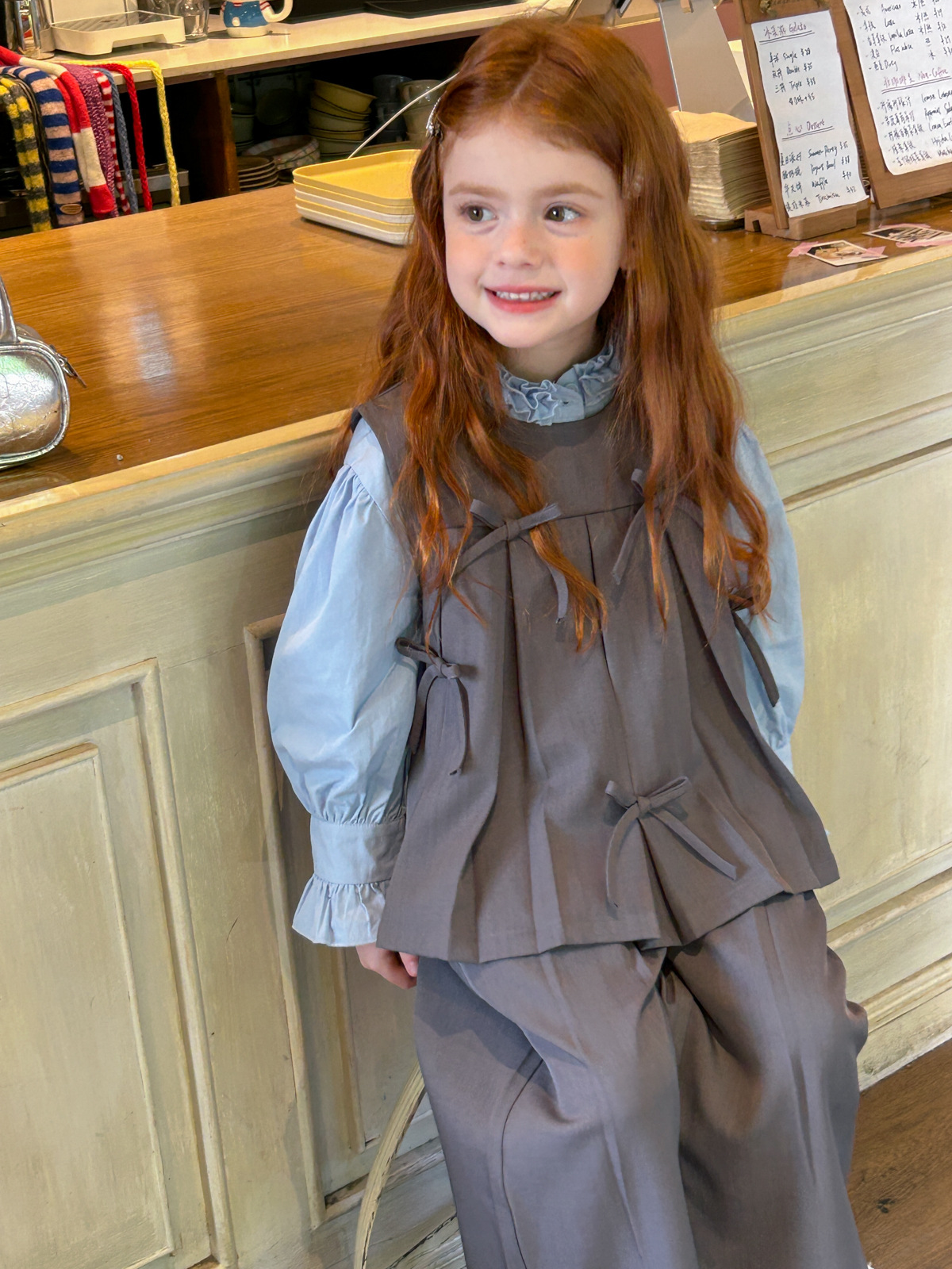 2025 새로운 가을 민소매 베이비돌 탑 소녀의 세련된 보우 슈트 조끼 싱글 조끼 탑