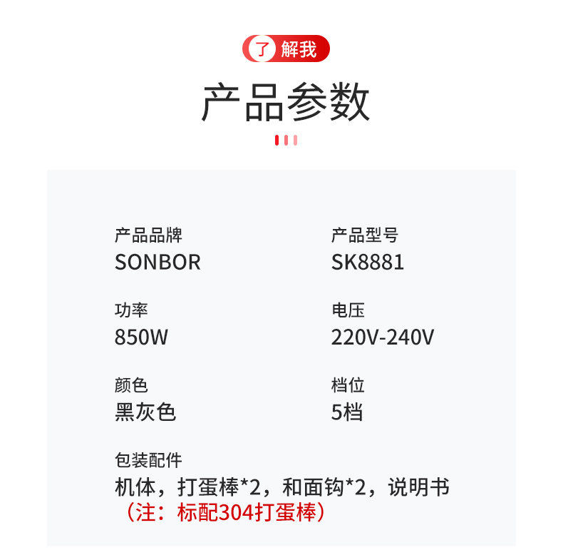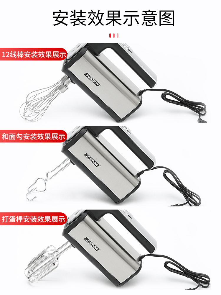 • 블랙 [표준 304 계란 비터] [믹싱 후크]