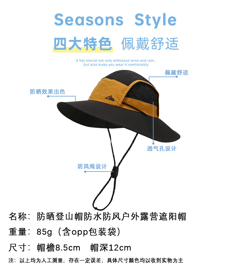 국경 간 대형 챙 색상 차단 야외 태양 보호 등산 모자 속건성 방수 어부 모자 남성용 사이클링 자외선 방지 태양 모자
