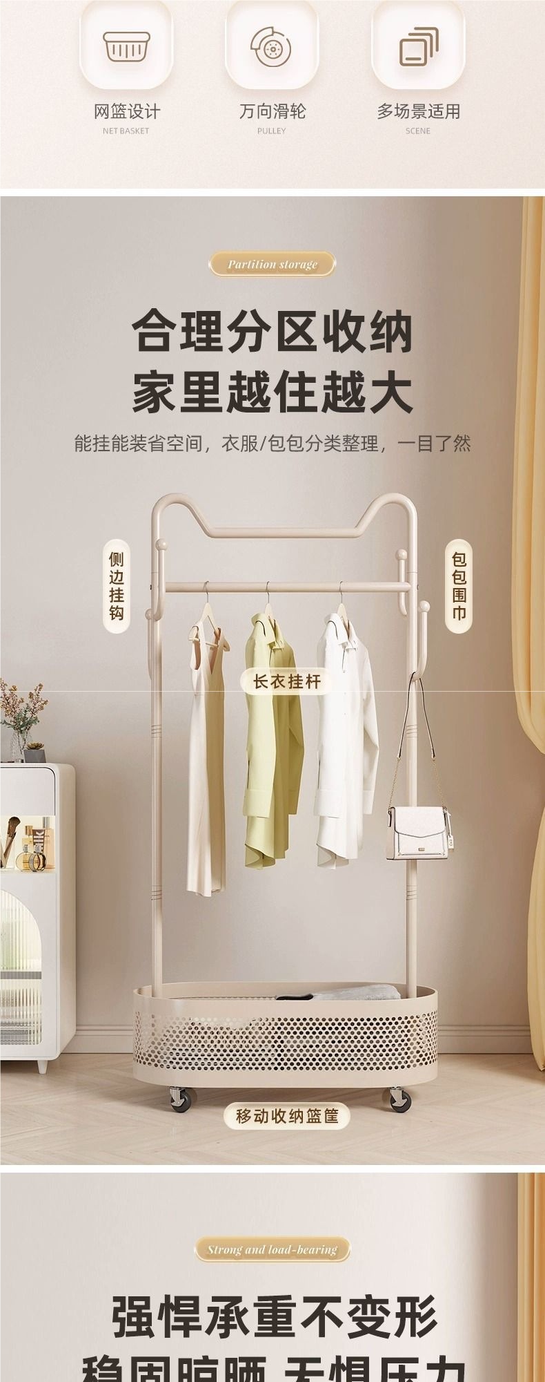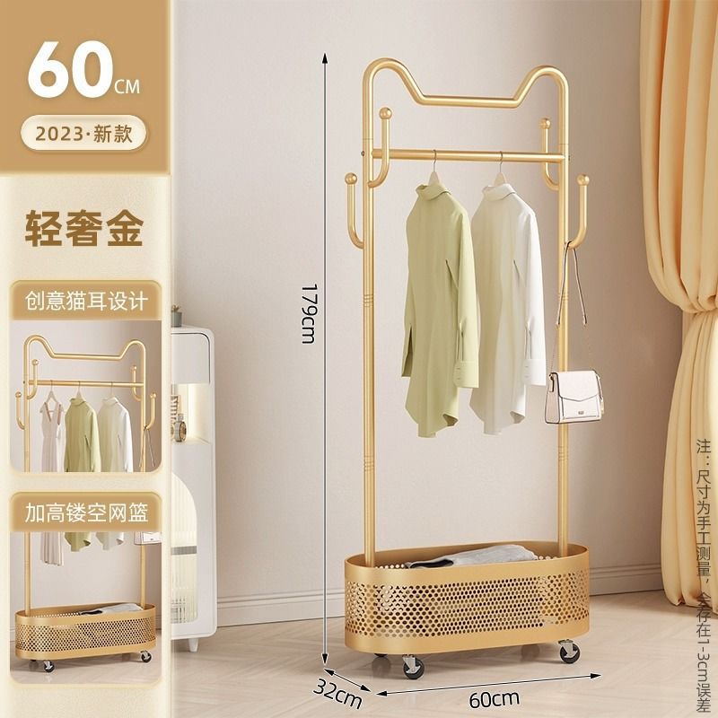 옷걸이 바닥 침실 옷걸이 이동식 바퀴 달린 가정용 실내 인터넷 연예인 라이트 럭셔리 옷걸이 간단한 코트 랙스토어 가기