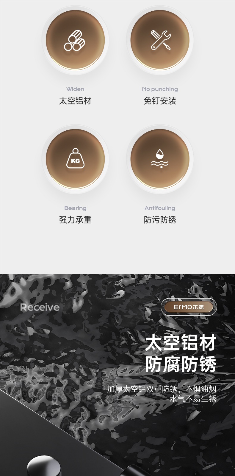 구멍이 없는 주방 후크 랙, 벽걸이 걸레 배수 랙, 다기능 주걱 및 스푼 용품 보관 랙스토어 가기