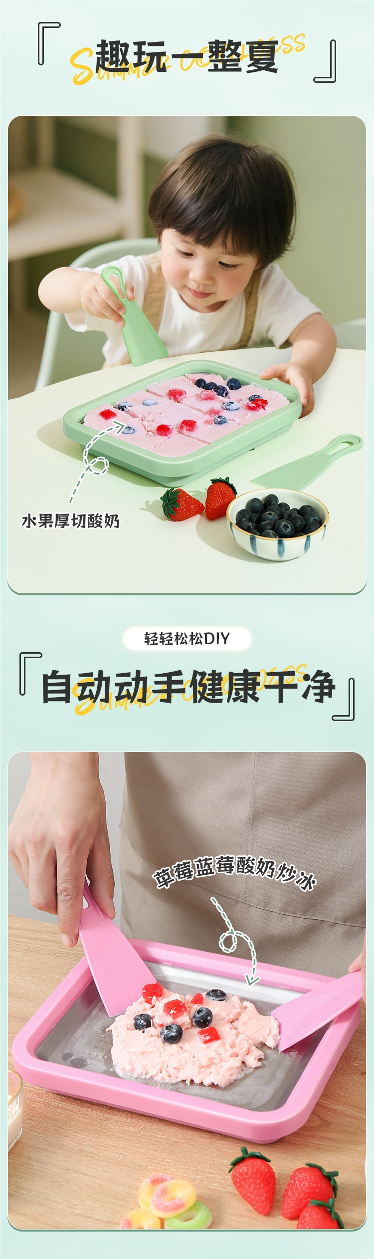 볶음 요구르트 기계 가정용 소형 어린이 미니 수제 diy 플러그인 프리 여름 아이스크림 기계 얼음 트레이 볶음 얼음 기계스토어 가기