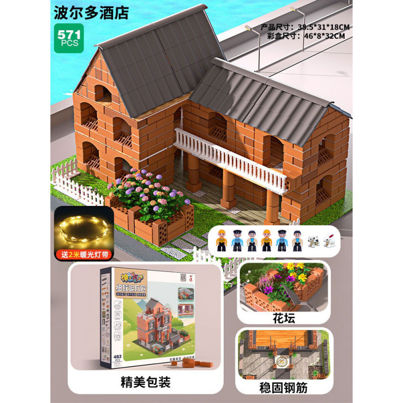 벽돌공이 집을 짓고 벽을 쌓는 장난감 새해 선물 어린이 건설 수제 벽돌 캐빈 미니 시멘트스토어 가기