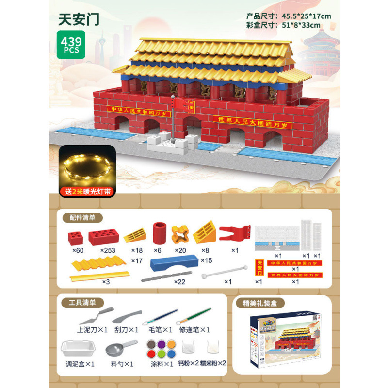 • -- ● ♢ ◆ 기본 버전 - 국차오 천안문 [439개 - 조명] 무료 도구 + 업그레이드된 강철 막대 ● ♢ ◆ -- ♢