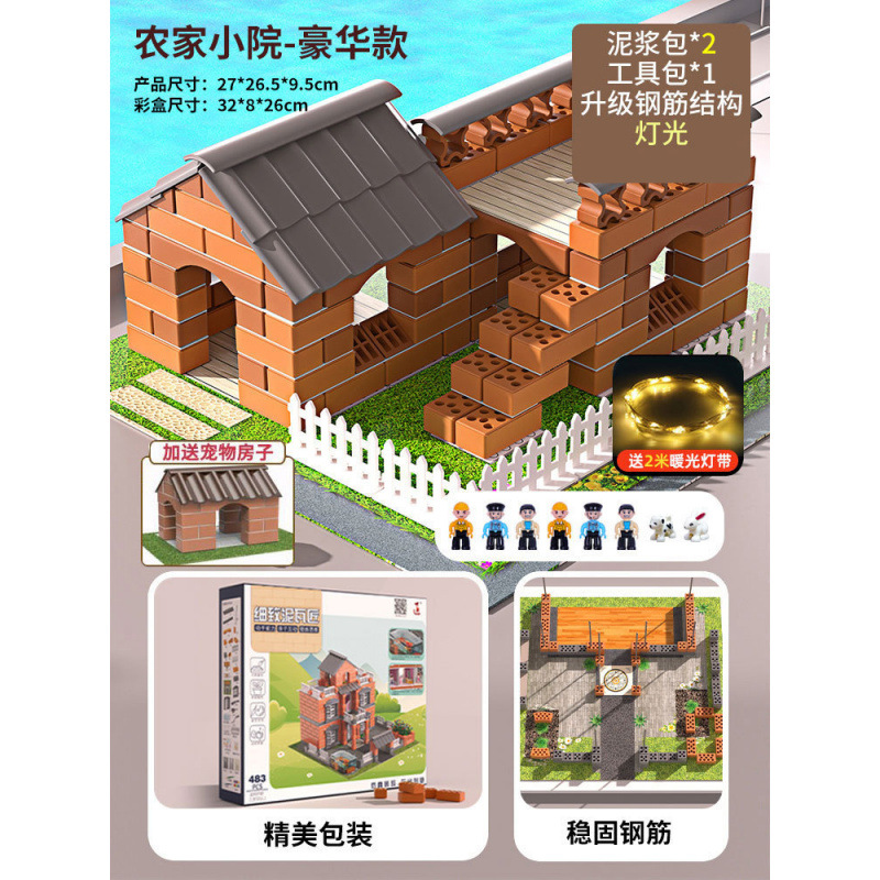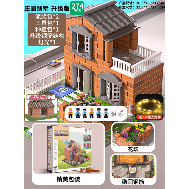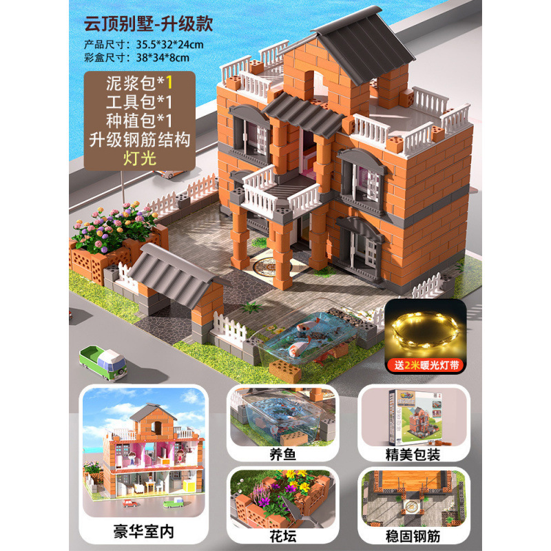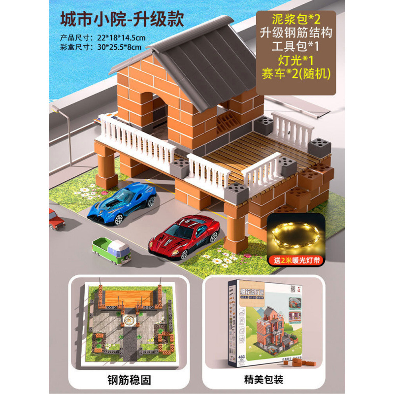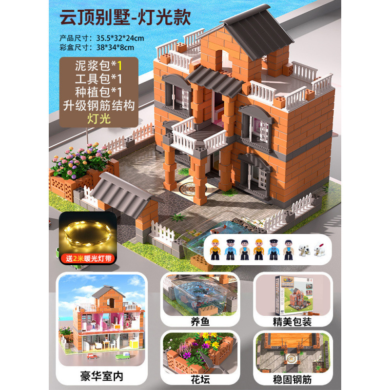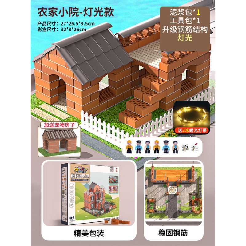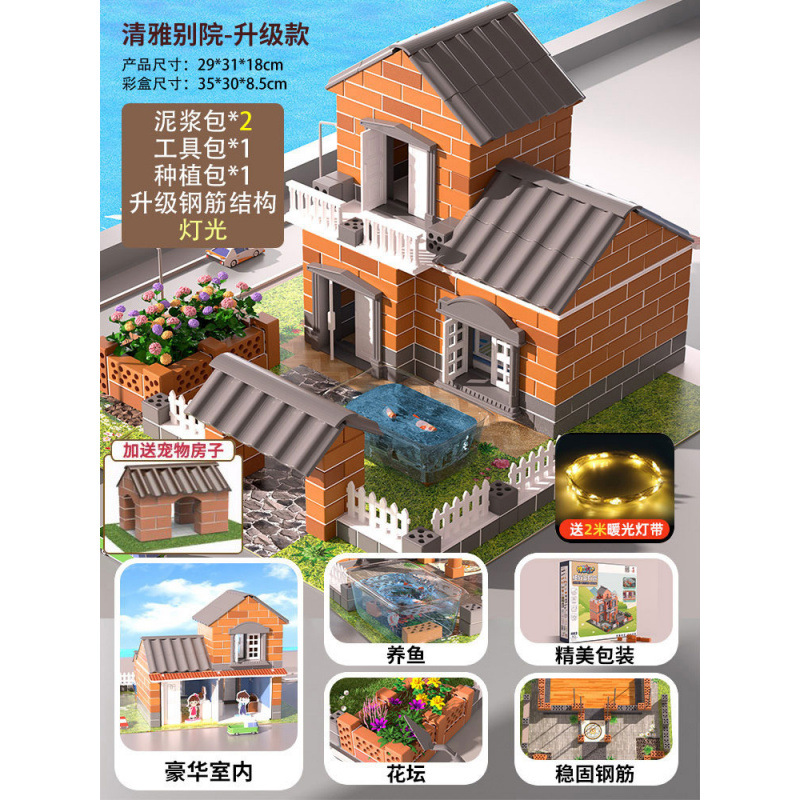 벽돌공이 집을 짓고 벽을 쌓는 장난감 새해 선물 어린이 건설 수제 벽돌 캐빈 미니 시멘트