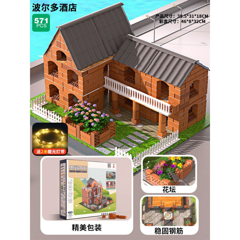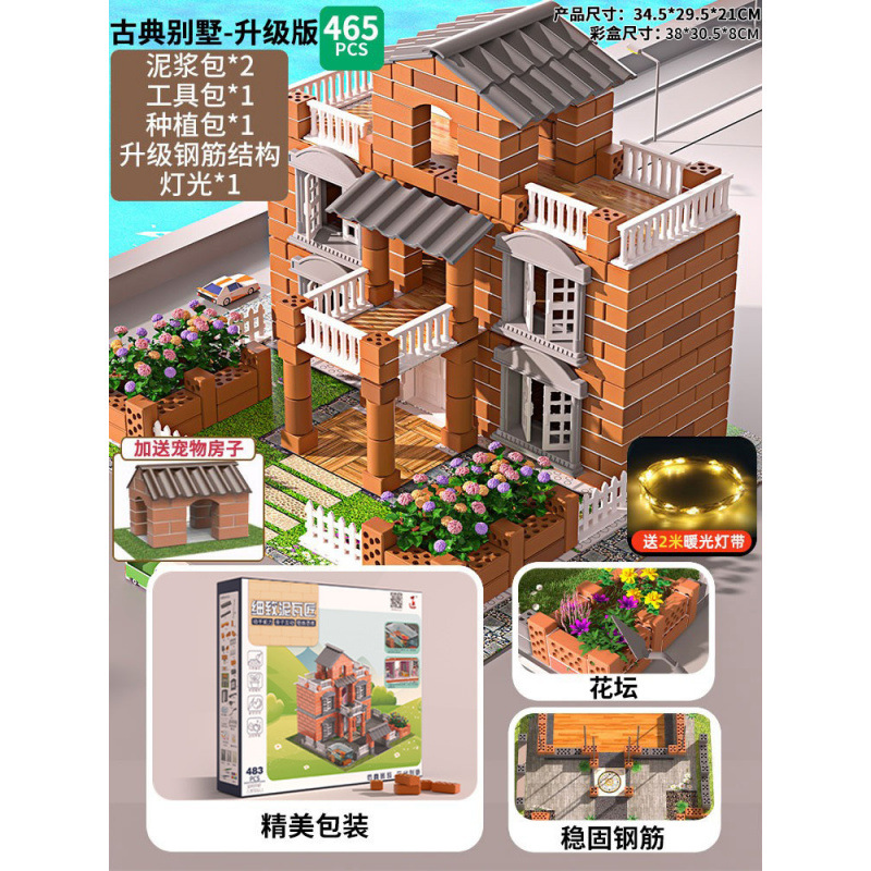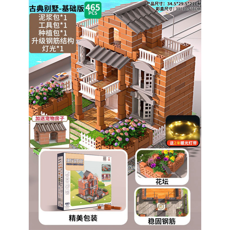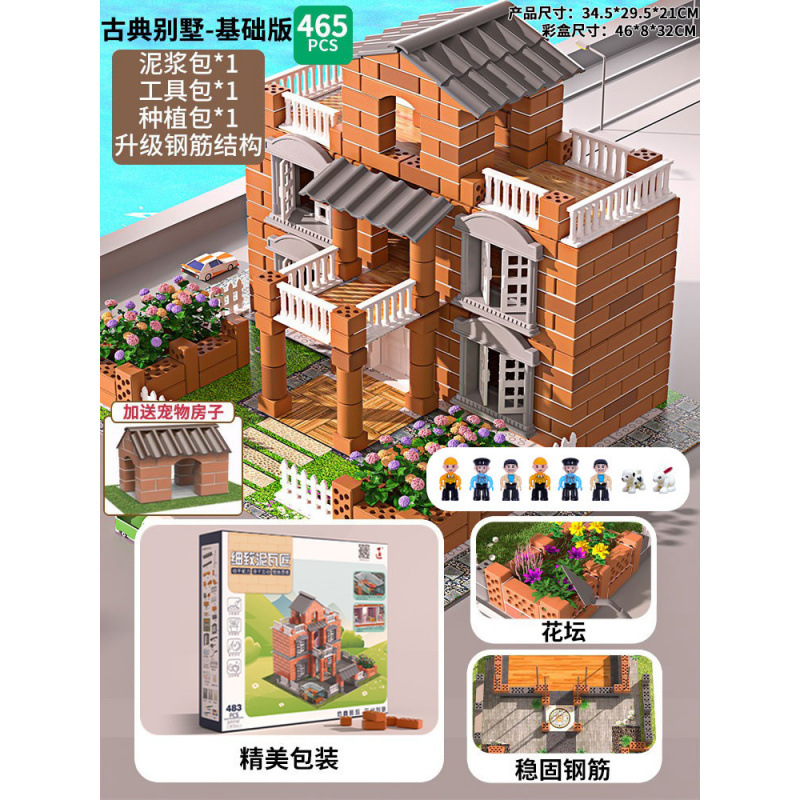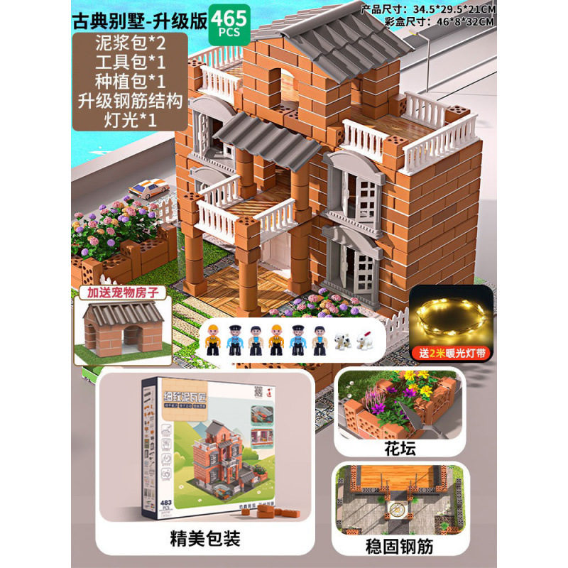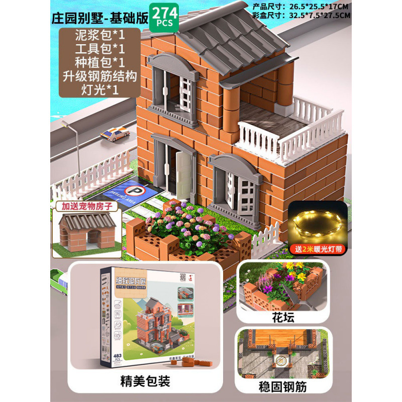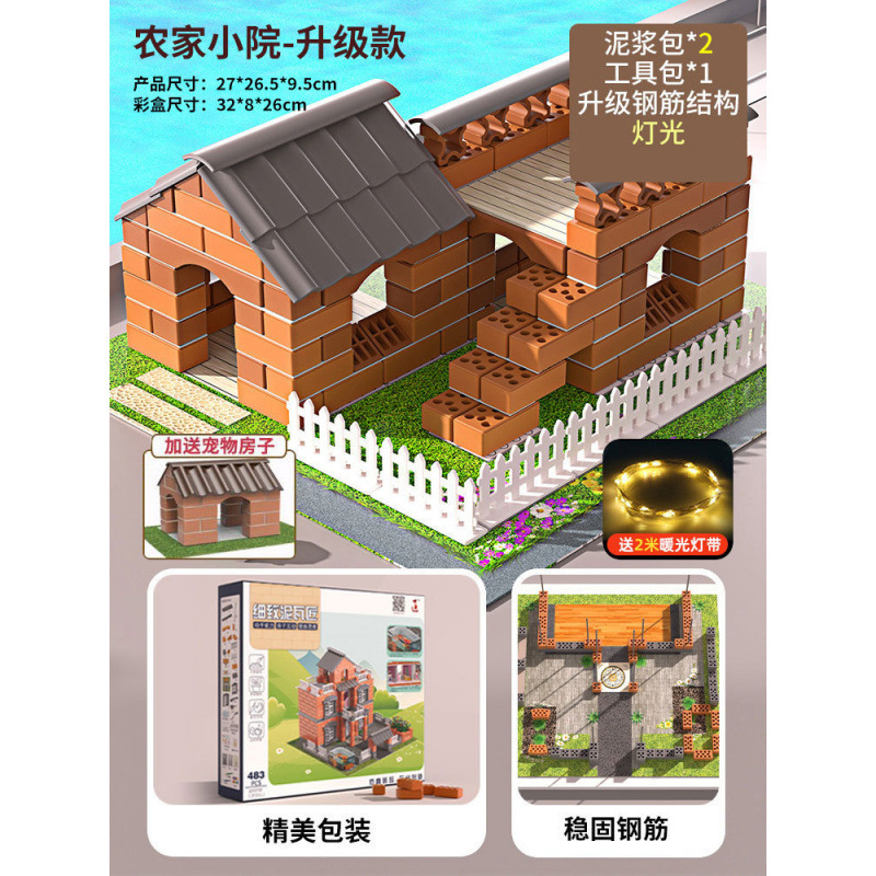 벽돌공이 집을 짓고 벽을 쌓는 장난감 새해 선물 어린이 건설 수제 벽돌 캐빈 미니 시멘트