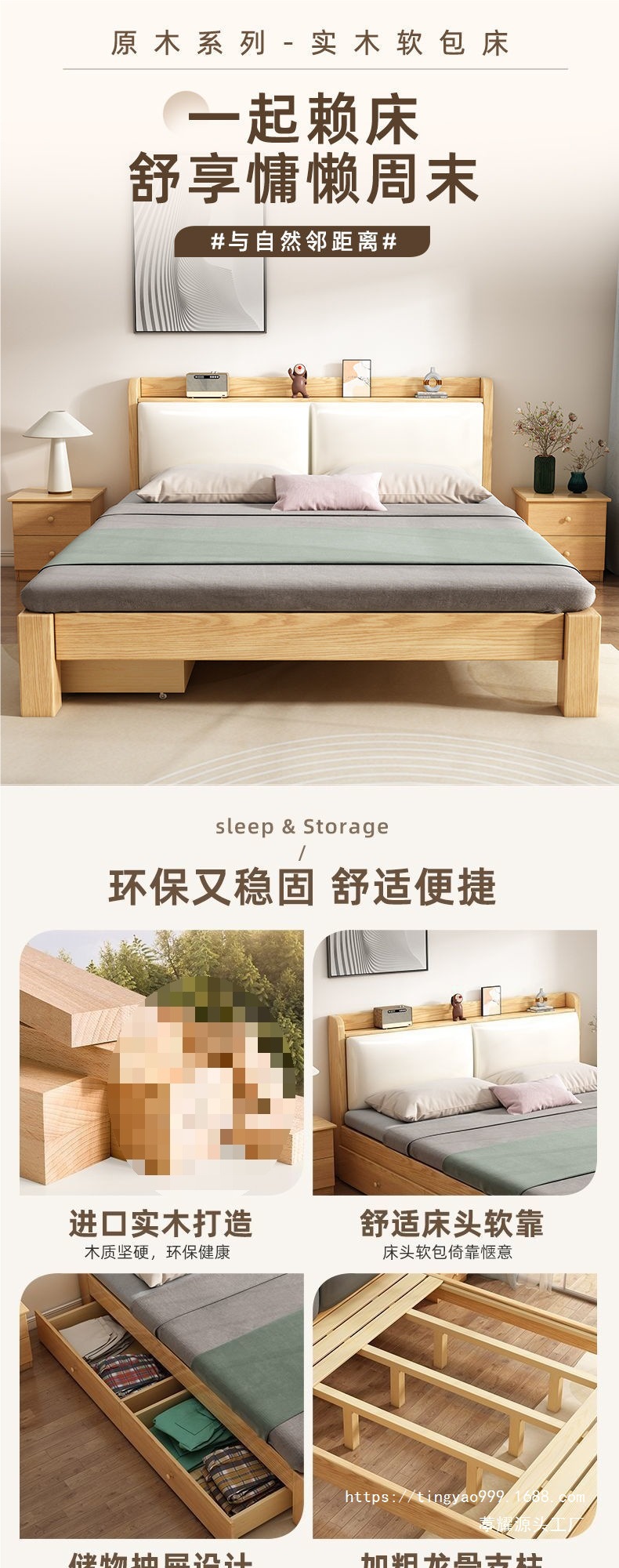 가정용 원목 침대 북유럽.미터 더블 침대.미터 싱글 수납 침대 임대실 경제형.침대 프레임스토어 가기