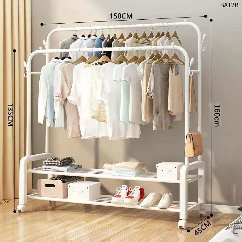 • [화이트] 수납망 2단 2열 151cm + 바퀴
