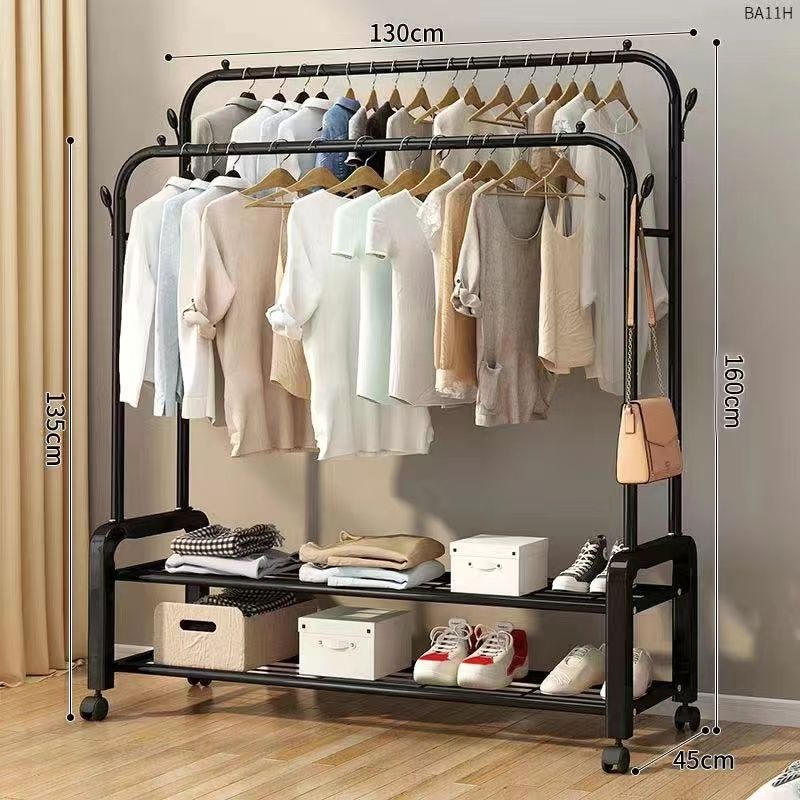 • [블랙] 수납망 2단 2열 131cm + 바퀴