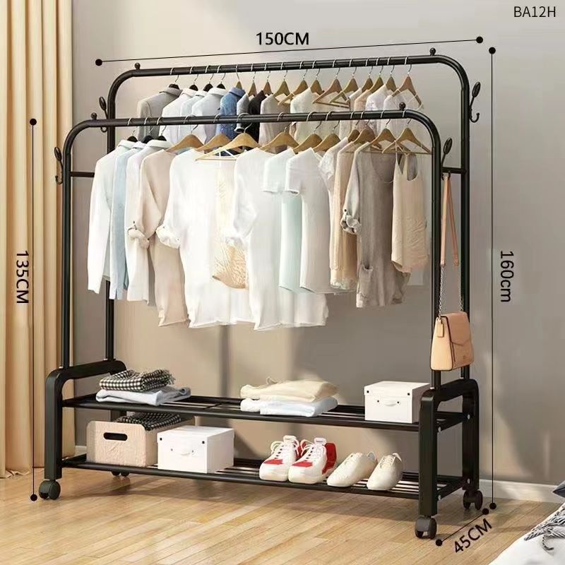 • [블랙] 수납망 2단 2열 151cm + 바퀴