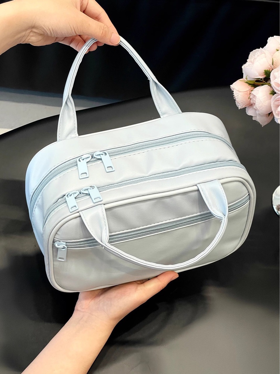 새로운 휴대용 3층 화장품 가방, 고급스럽고 대용량 여행 화장품 다기능 휴대용 방수 보관 가방