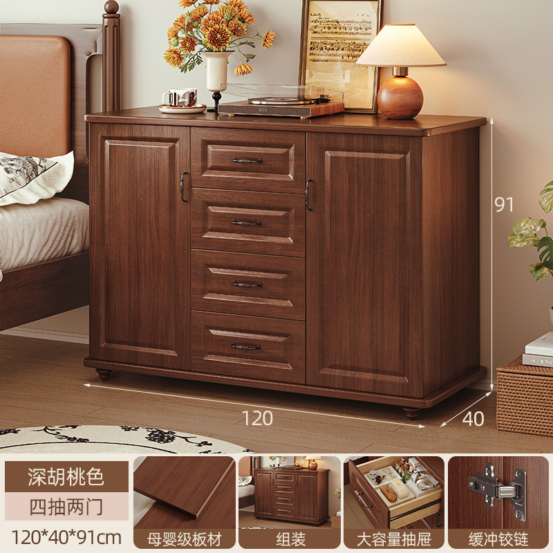 • [고급 유럽 소나무 보드 - 친환경 보드] 120CM 다크 월넛 색상 [도어 2개, 서랍 4개] [유럽 소나무 보드 버전의 도어 패널과 서랍 표면은 공정상의 문제로 밀도 보드로 제작되었습니다]