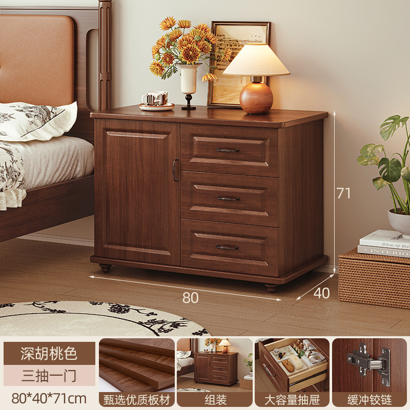 • [고급 유럽 소나무 보드 - 친환경 보드] 80CM 다크 월넛 컬러 [도어 1개, 서랍 3개] [유럽 소나무 보드 버전의 도어 패널과 서랍 표면은 공정상의 문제로 밀도 보드로 제작되었습니다]