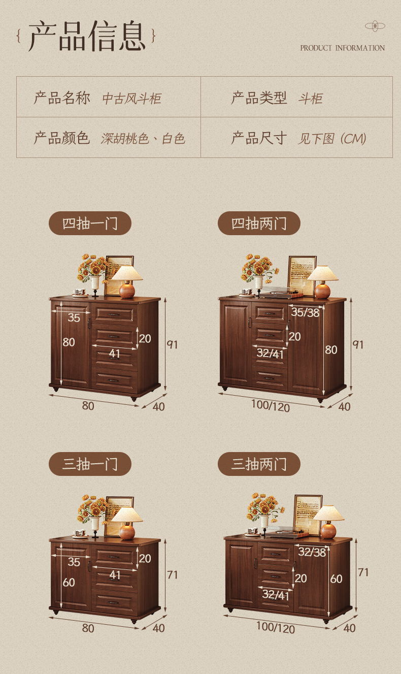 • [고급 유럽 소나무 보드 - 친환경 보드] 80CM 다크 월넛 컬러 [도어 1개, 서랍 4개] [유럽 소나무 보드 버전의 도어 패널과 서랍 표면은 공정상의 문제로 밀도 보드로 제작되었습니다]
