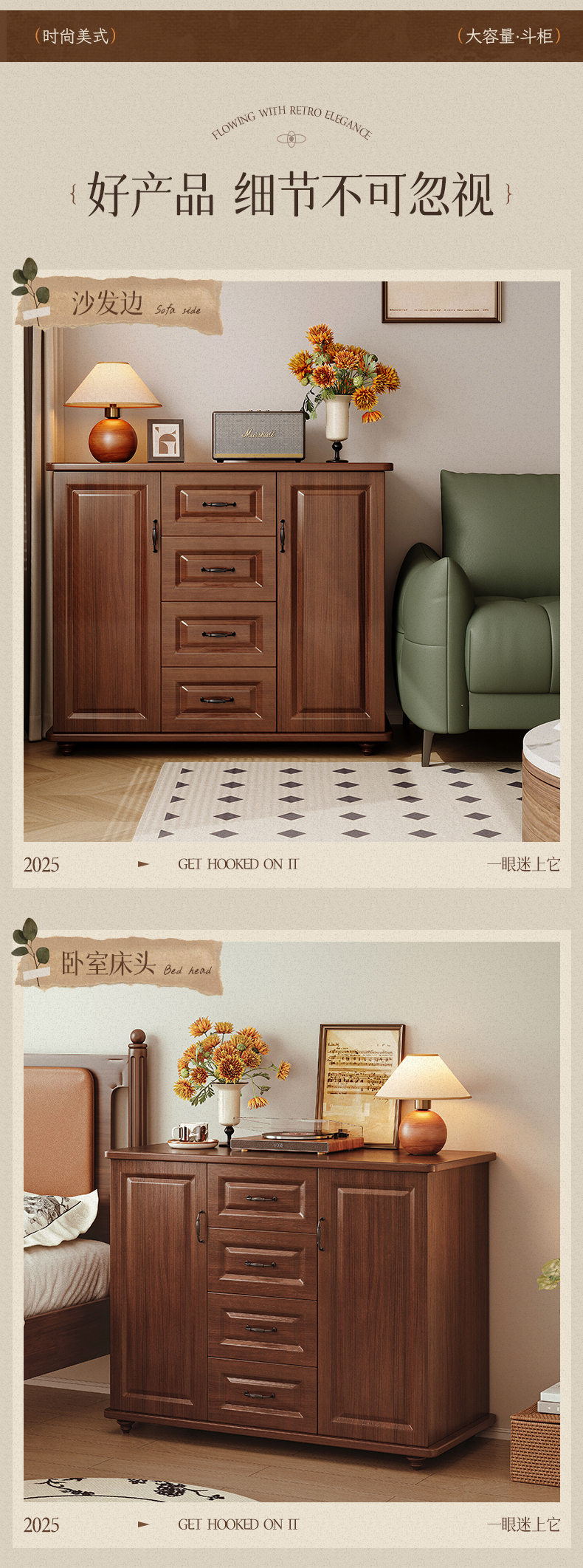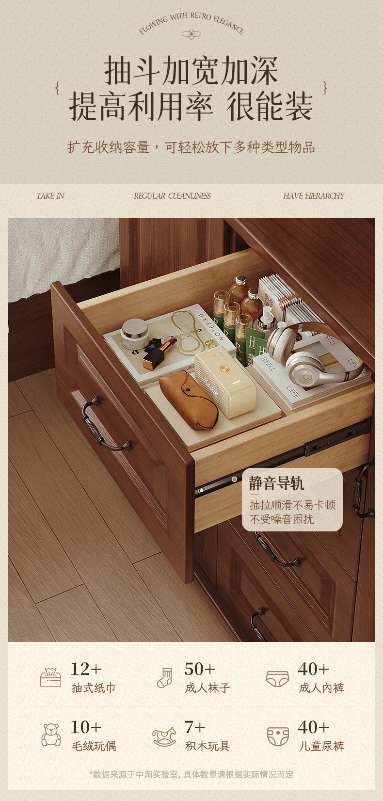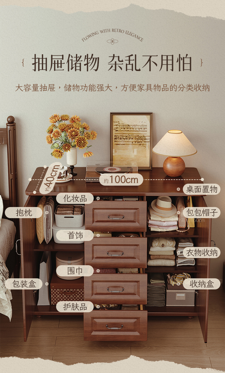 미국식 서랍장 침실 수납장 벽 서랍장 룸 수납장 거실 복고풍 수납장 서랍장