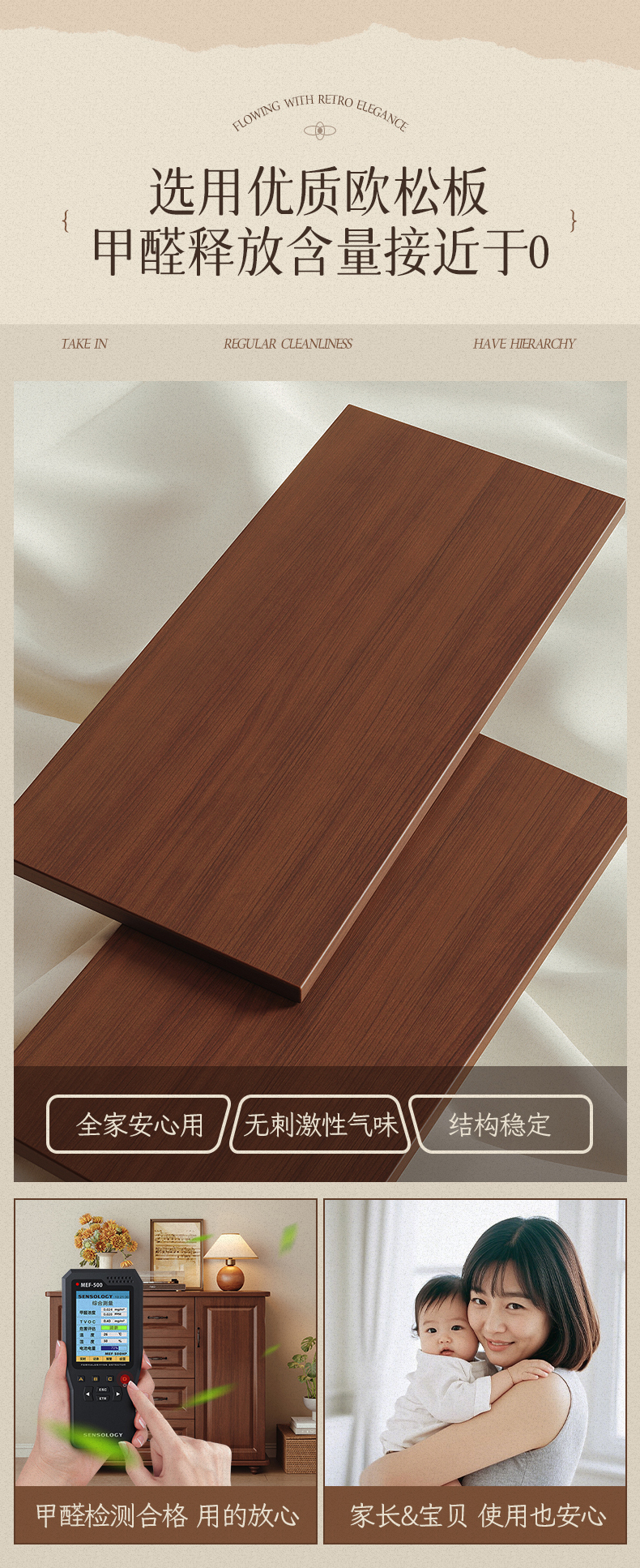 • [고급 유럽 소나무 보드 - 친환경 보드] 100CM 다크 월넛 색상 [도어 2개, 서랍 4개] [유럽 소나무 보드 버전의 도어 패널과 서랍 표면은 공정상의 문제로 밀도 보드로 제작되었습니다]