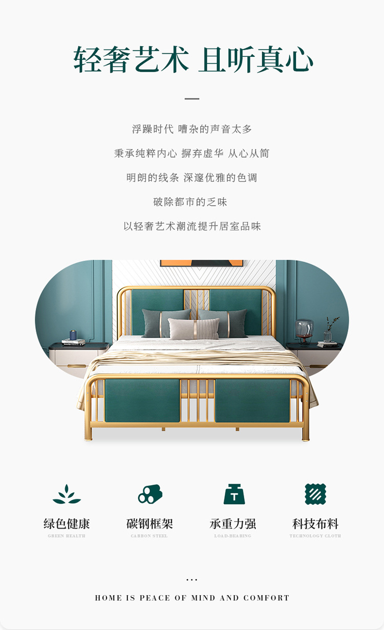 단철 침대 더블 모던 심플 소프트 침대 가정용 소프트 침대 아파트 1.35m B&B 싱글 철제 침대스토어 가기