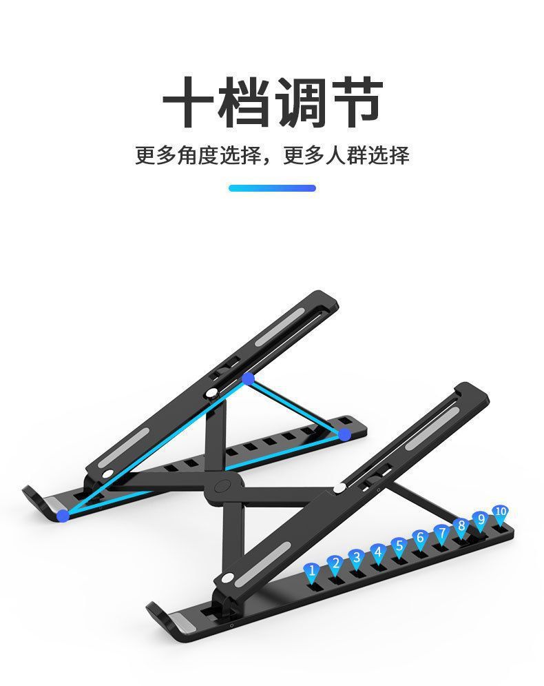N3 대형 플라스틱 노트북 스탠드, 접이식 높이 조절 데스크탑 스탠드, 열 방출 기능, 10단계 높이 조절 가능