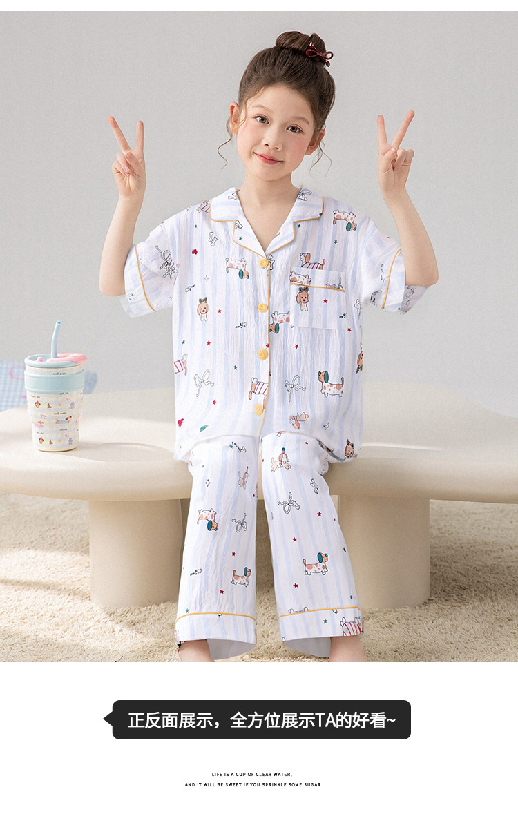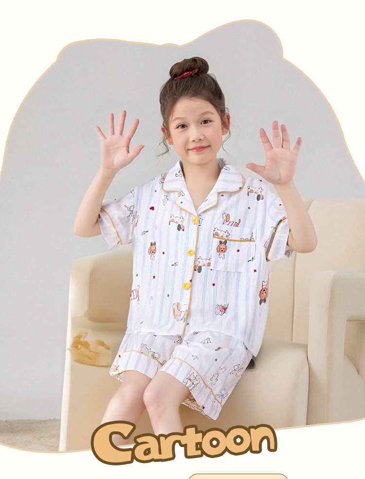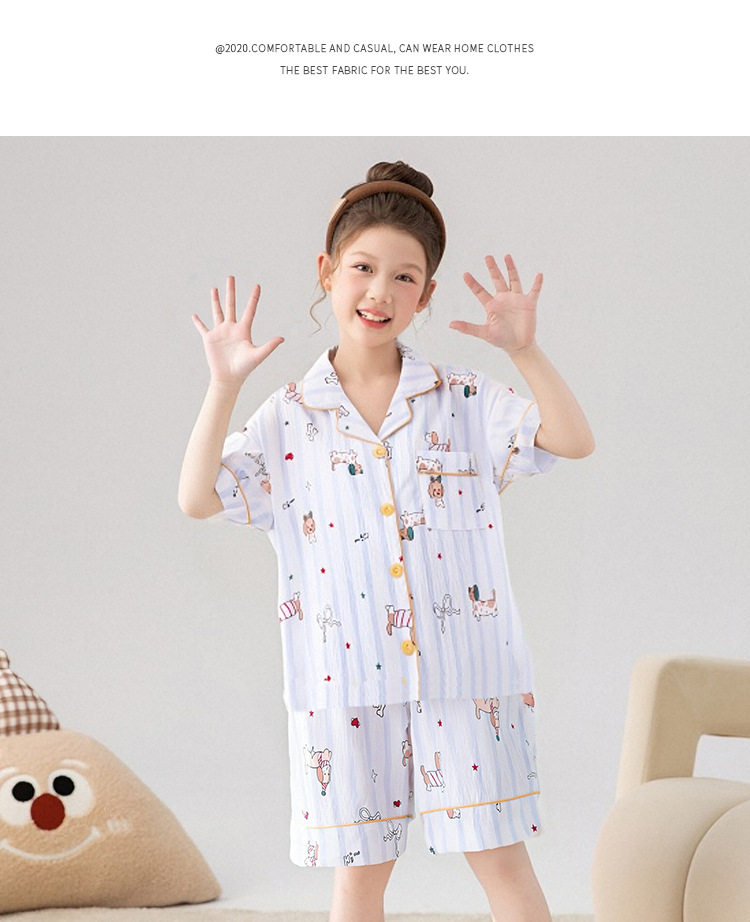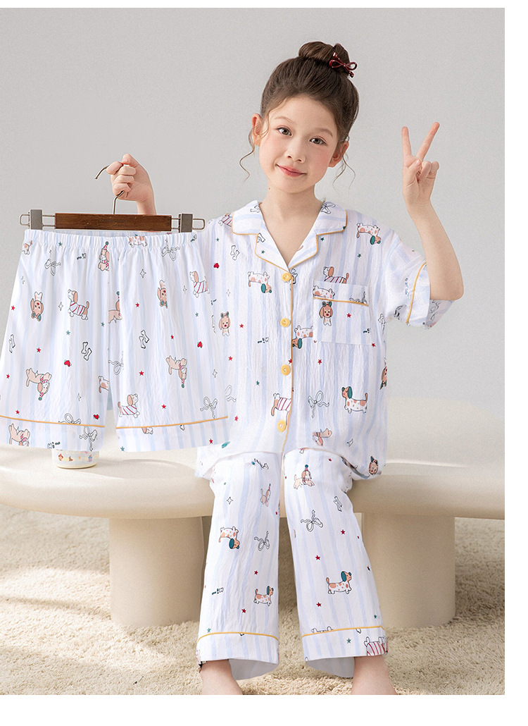 여름 여아용 아동 잠옷 3종 세트, 중학생용 구름면 얇은 에어컨 홈웨어스토어 가기