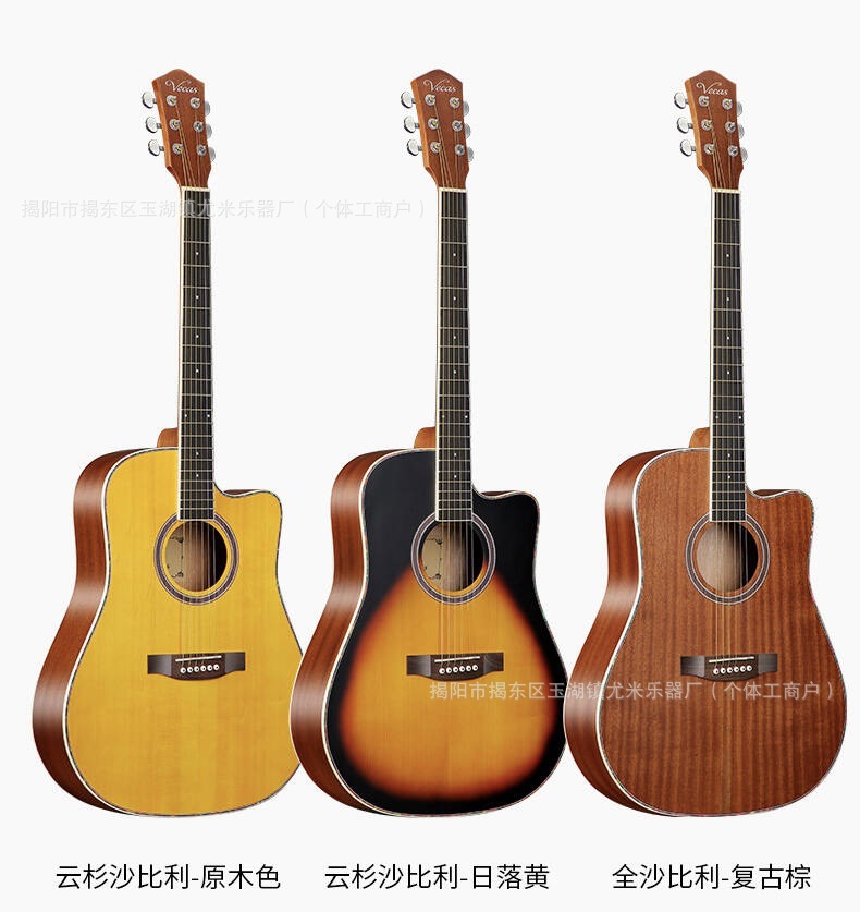 싱글 보드 기타 41inch 스프루스 전체 목재 기타 Sapele 노치 보급형 기타 포크 기타 국경 간 도매