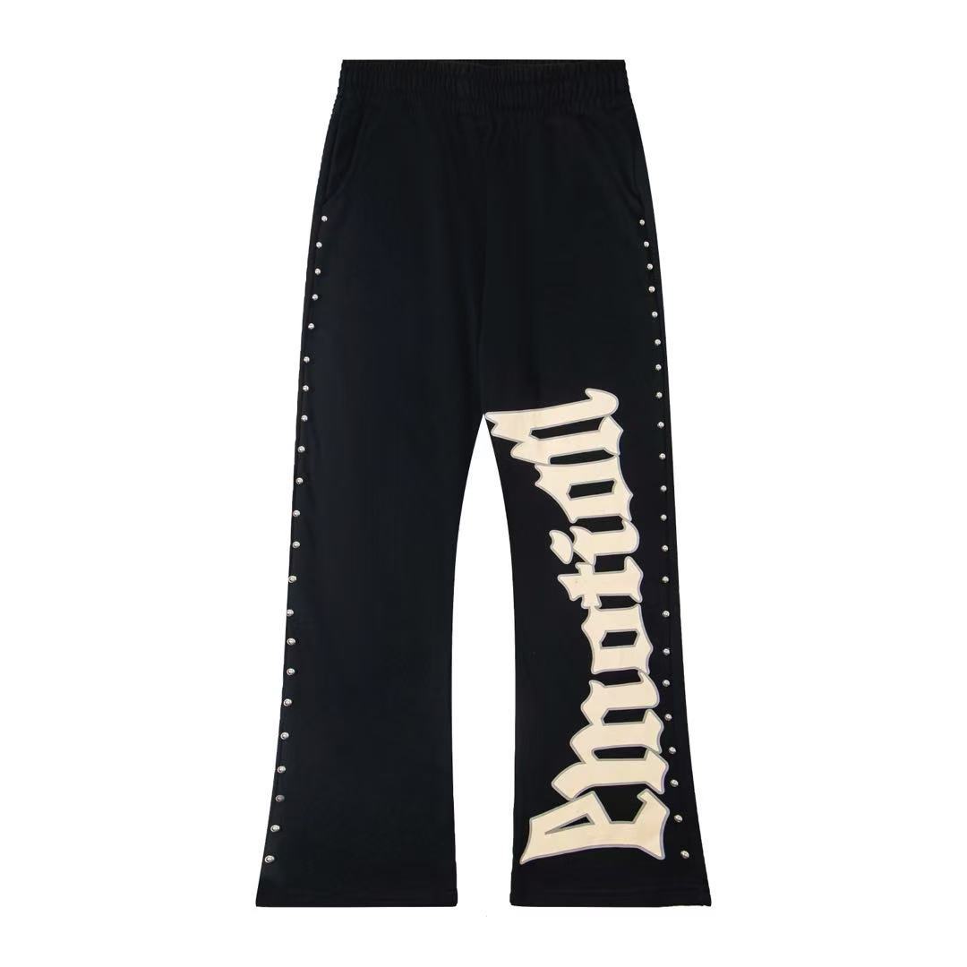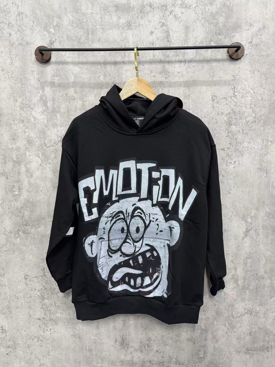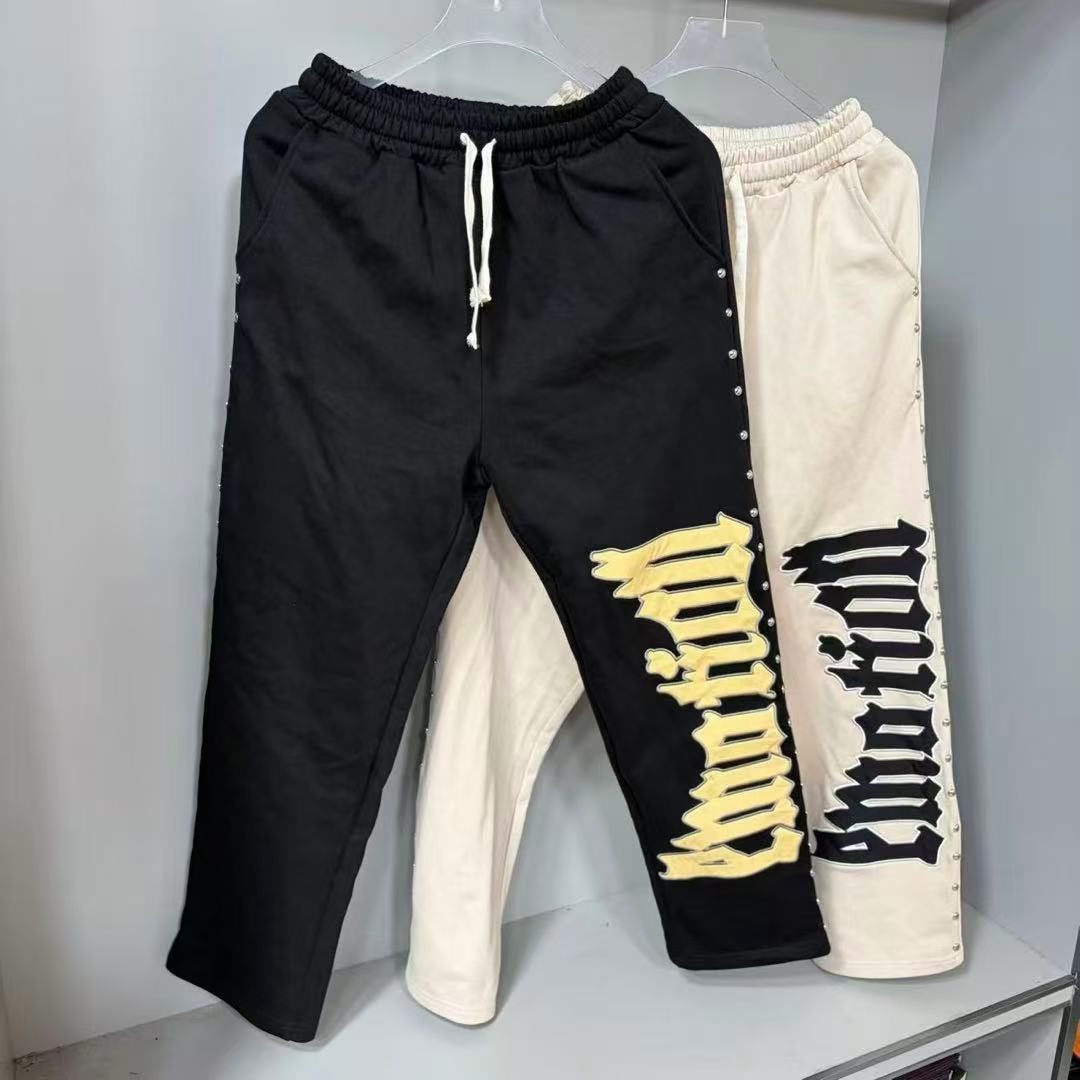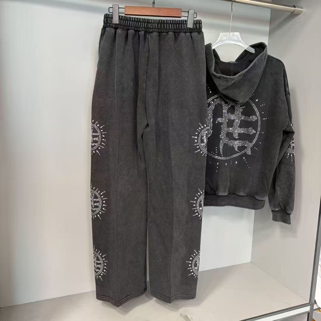 트렌디 브랜드 MIXED EMOTION 신상 레터 자수 큐빅 장식 캐주얼 바지 루즈핏 후드티 남성용