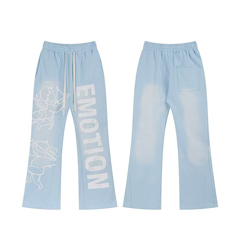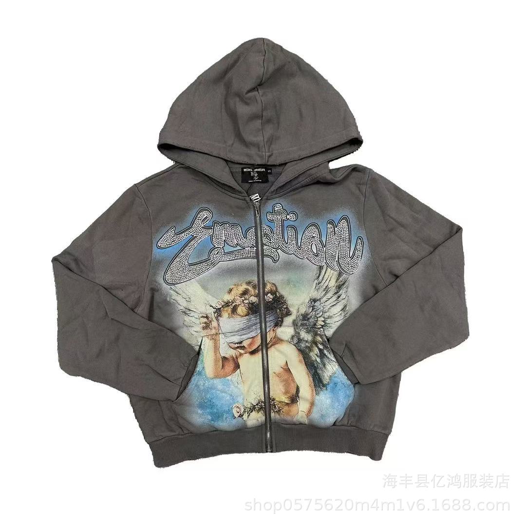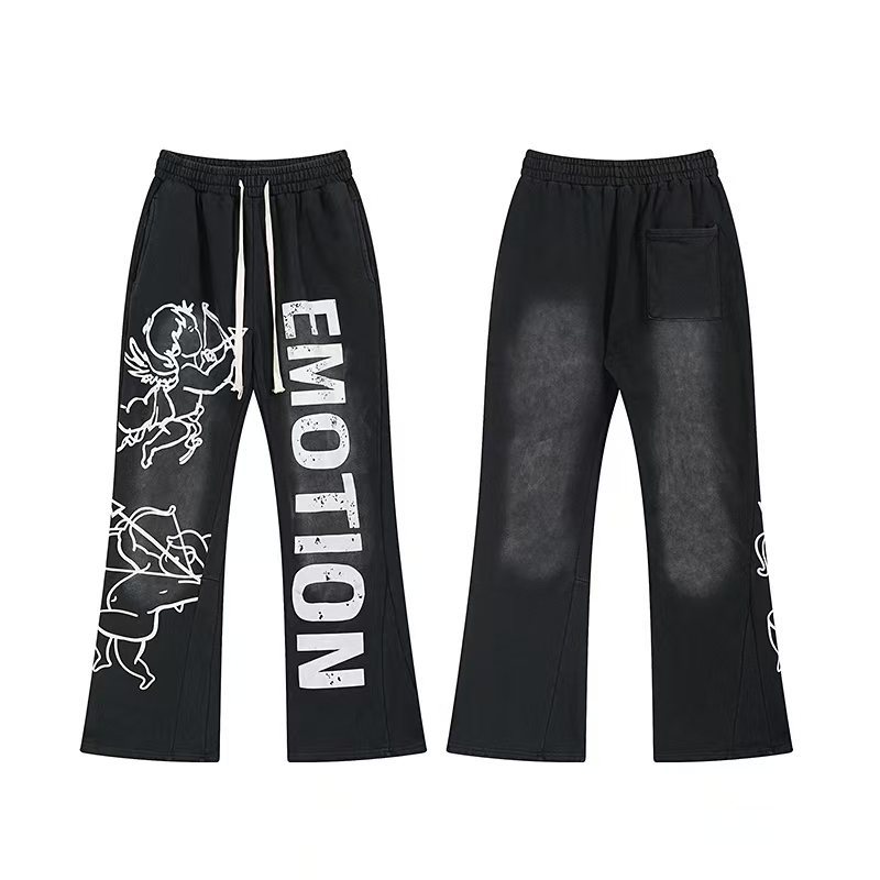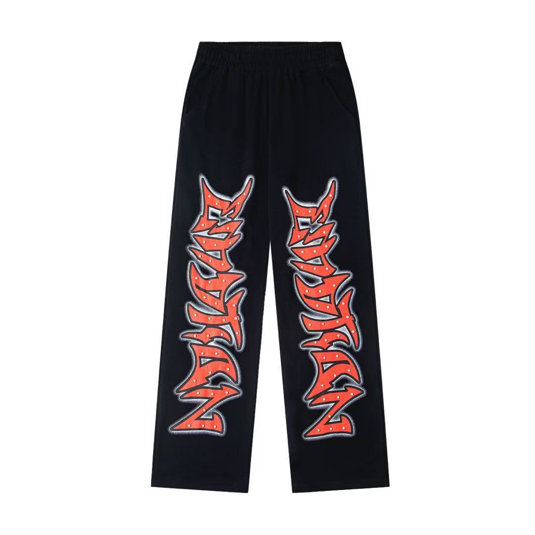 트렌디 브랜드 MIXED EMOTION 신상 레터 자수 큐빅 장식 캐주얼 바지 루즈핏 후드티 남성용