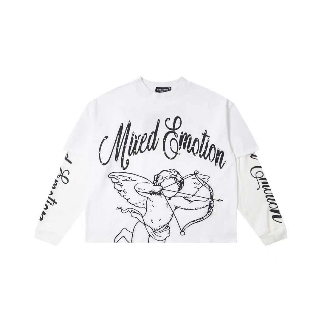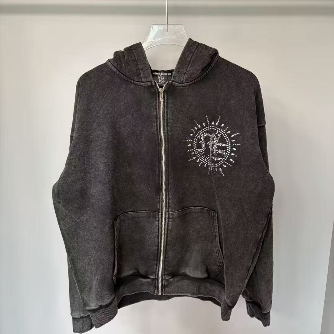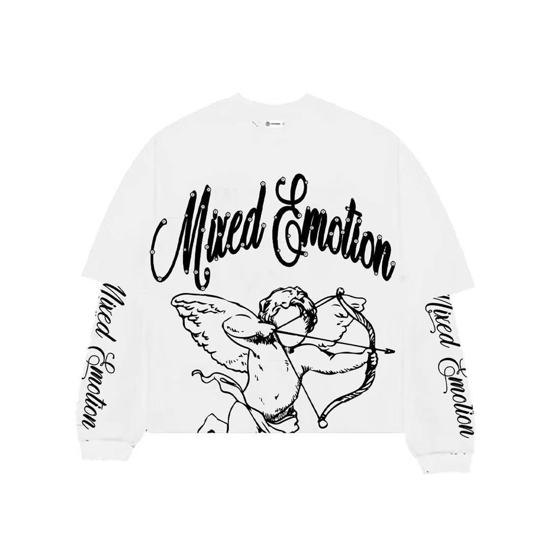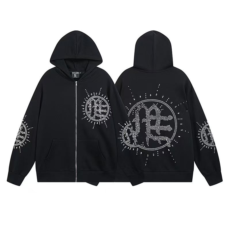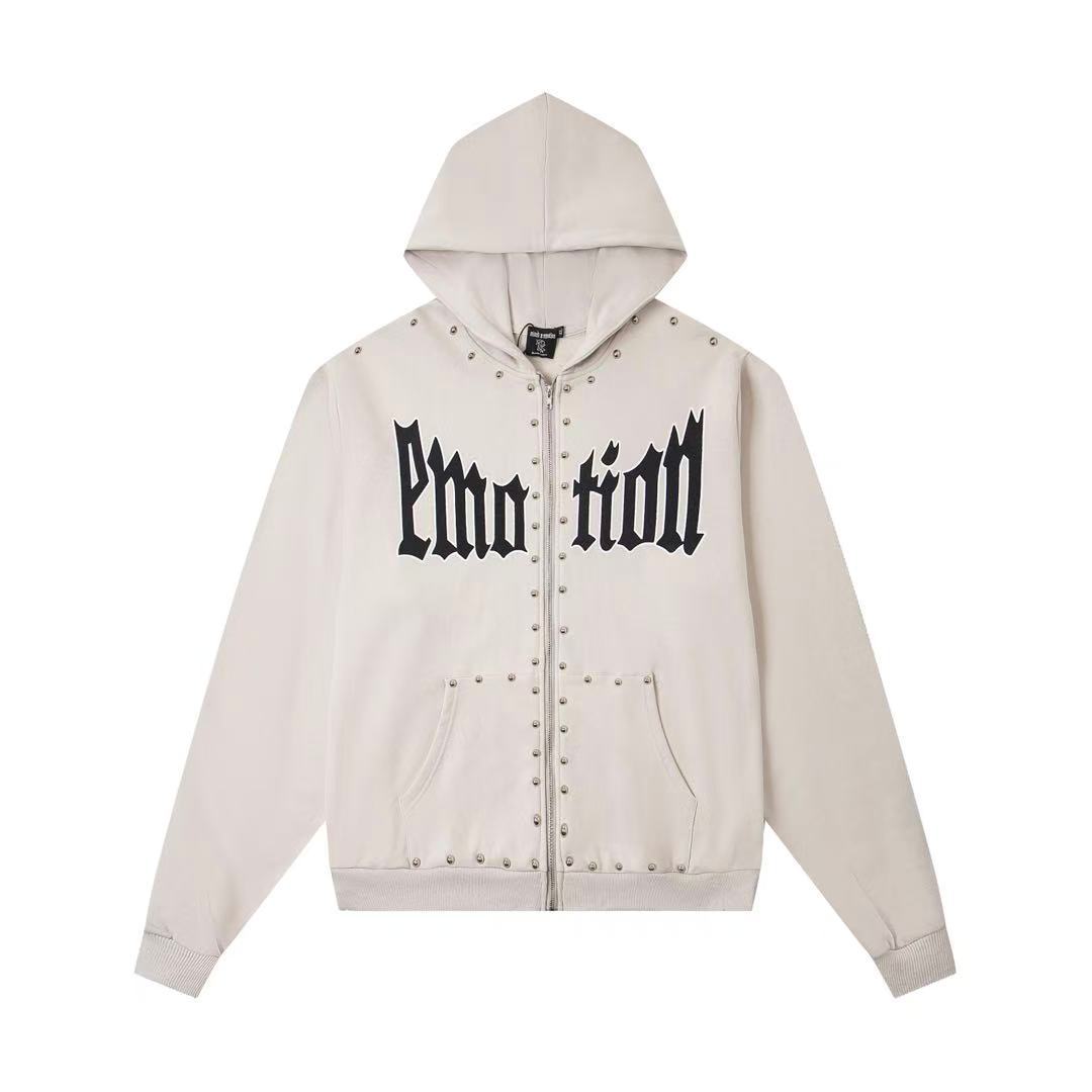 트렌디 브랜드 MIXED EMOTION 신상 레터 자수 큐빅 장식 캐주얼 바지 루즈핏 후드티 남성용스토어 가기