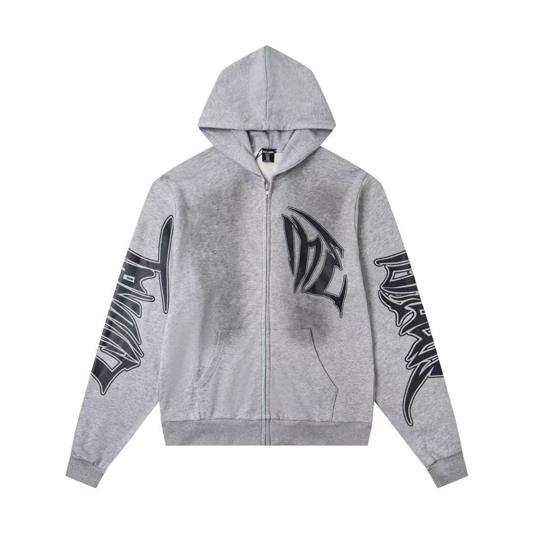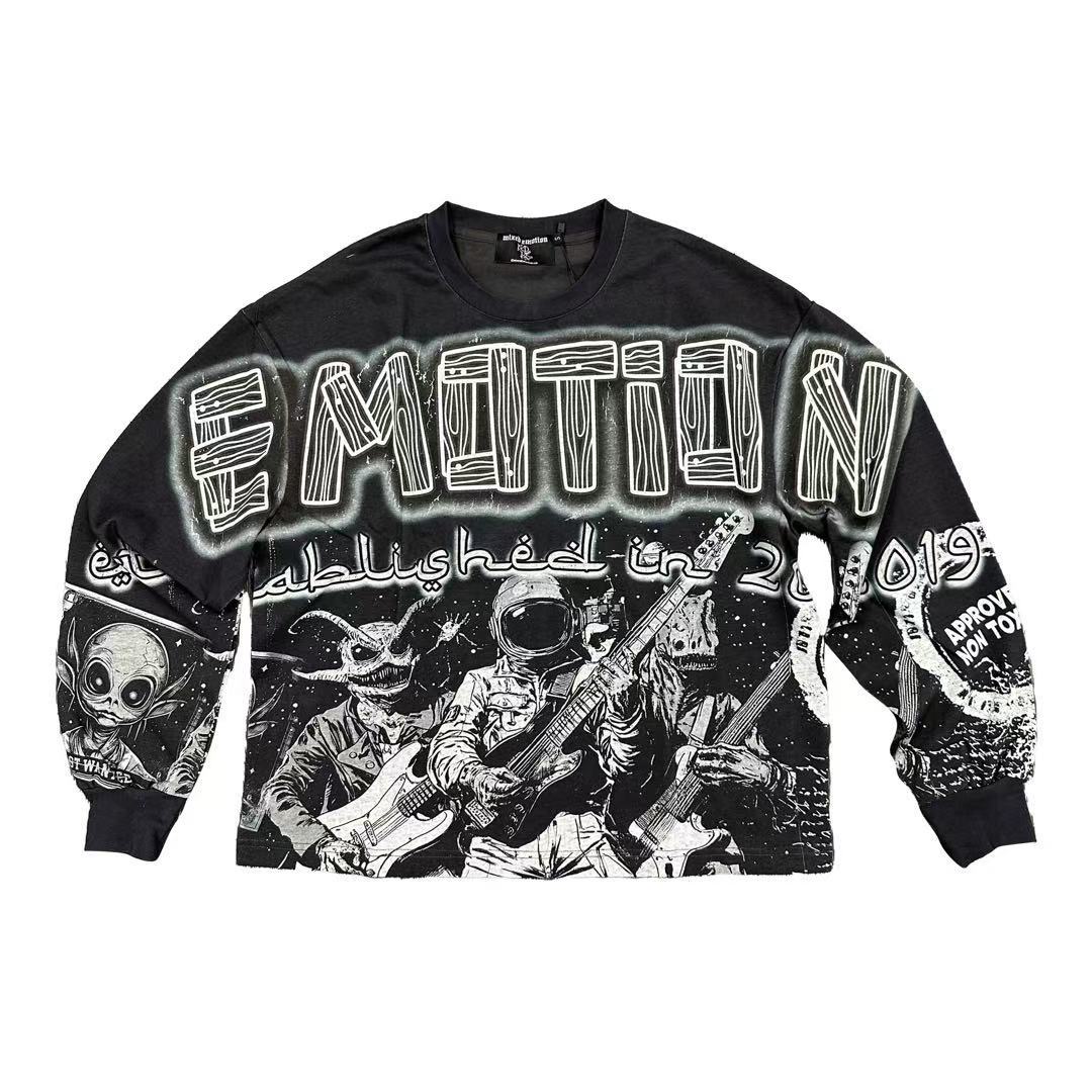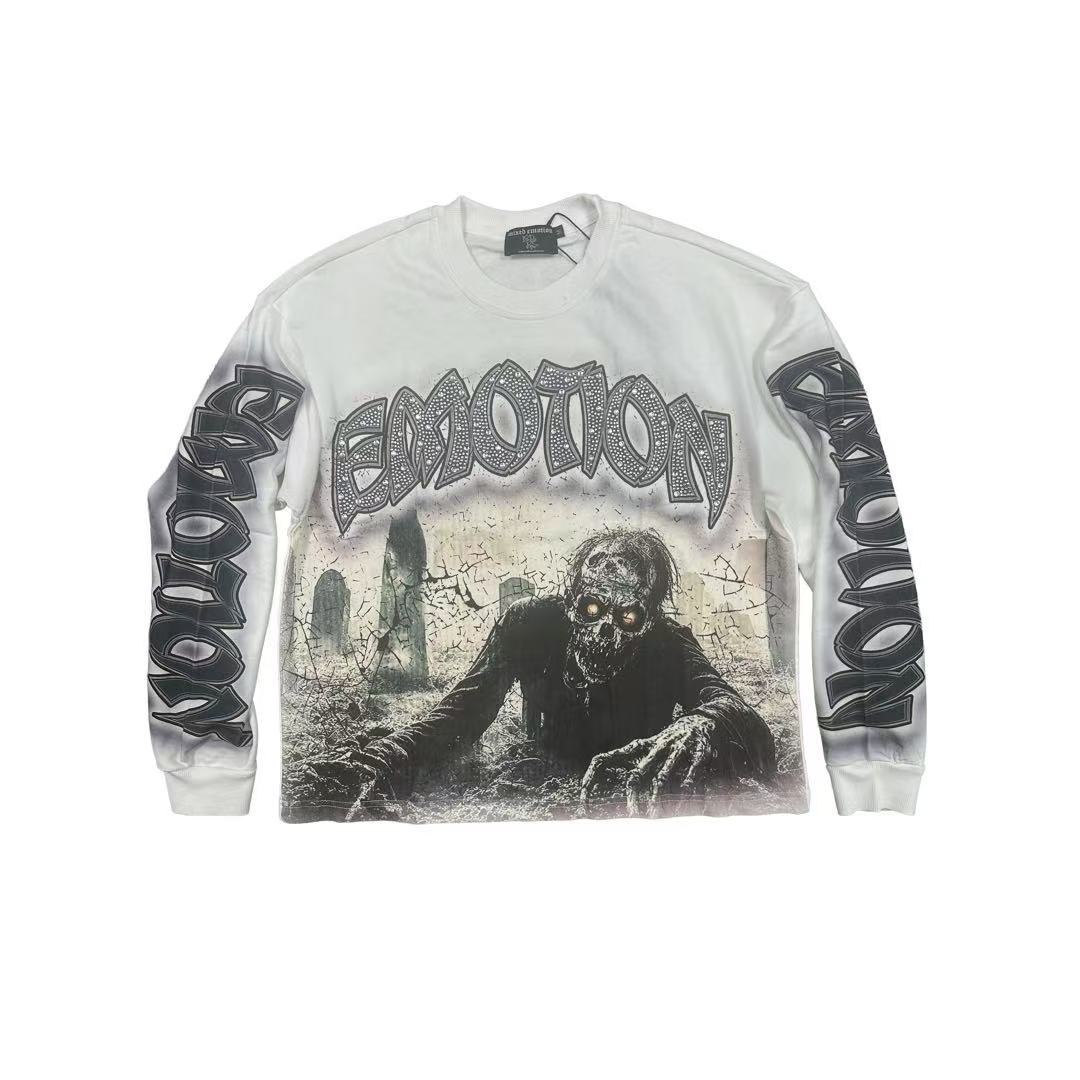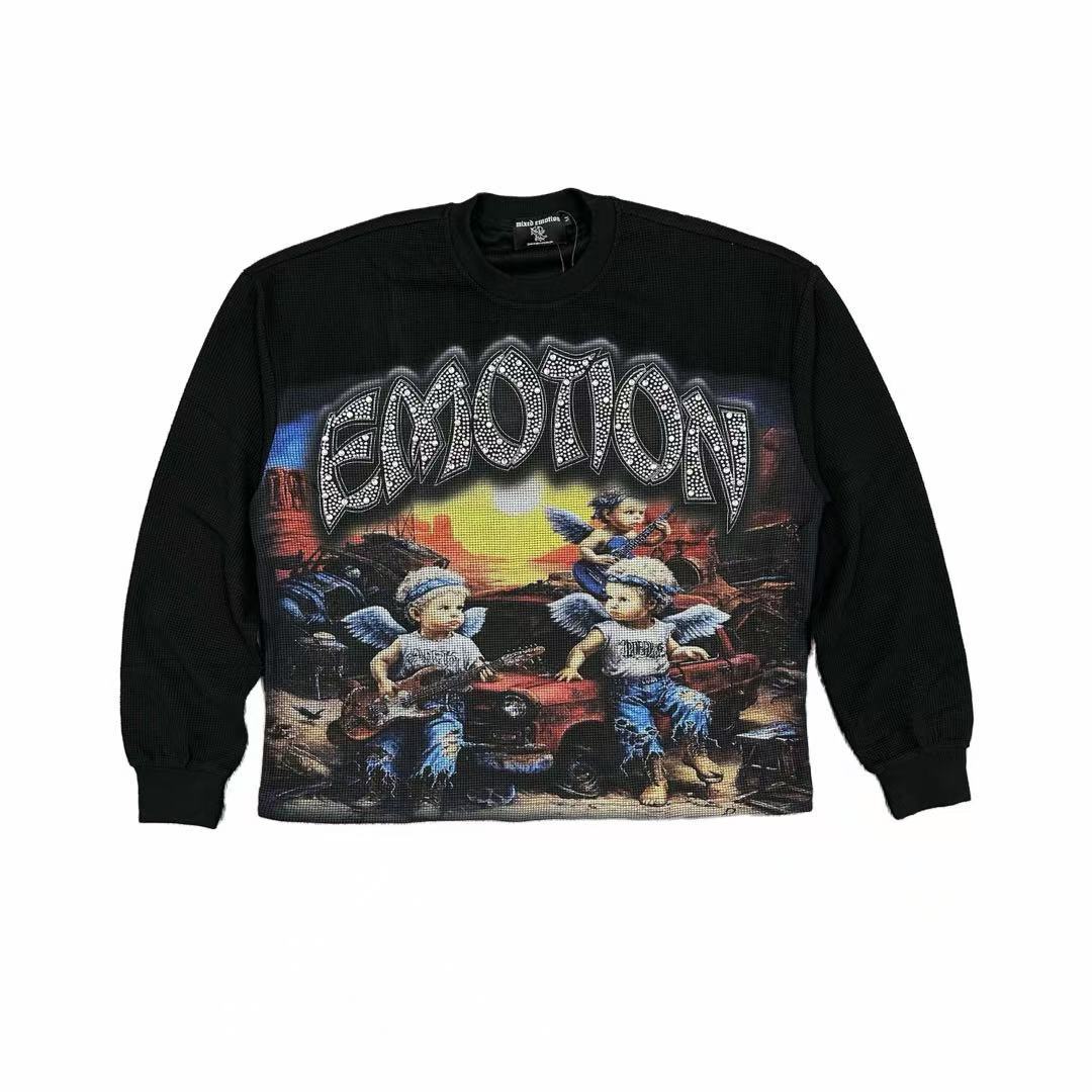 트렌디 브랜드 MIXED EMOTION 신상 레터 자수 큐빅 장식 캐주얼 바지 루즈핏 후드티 남성용스토어 가기