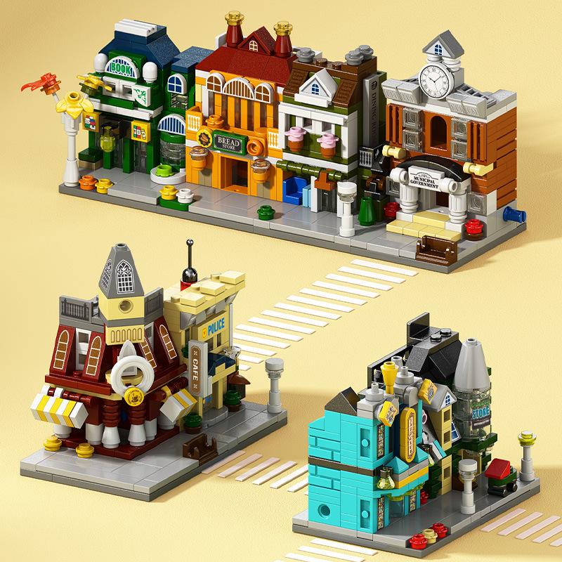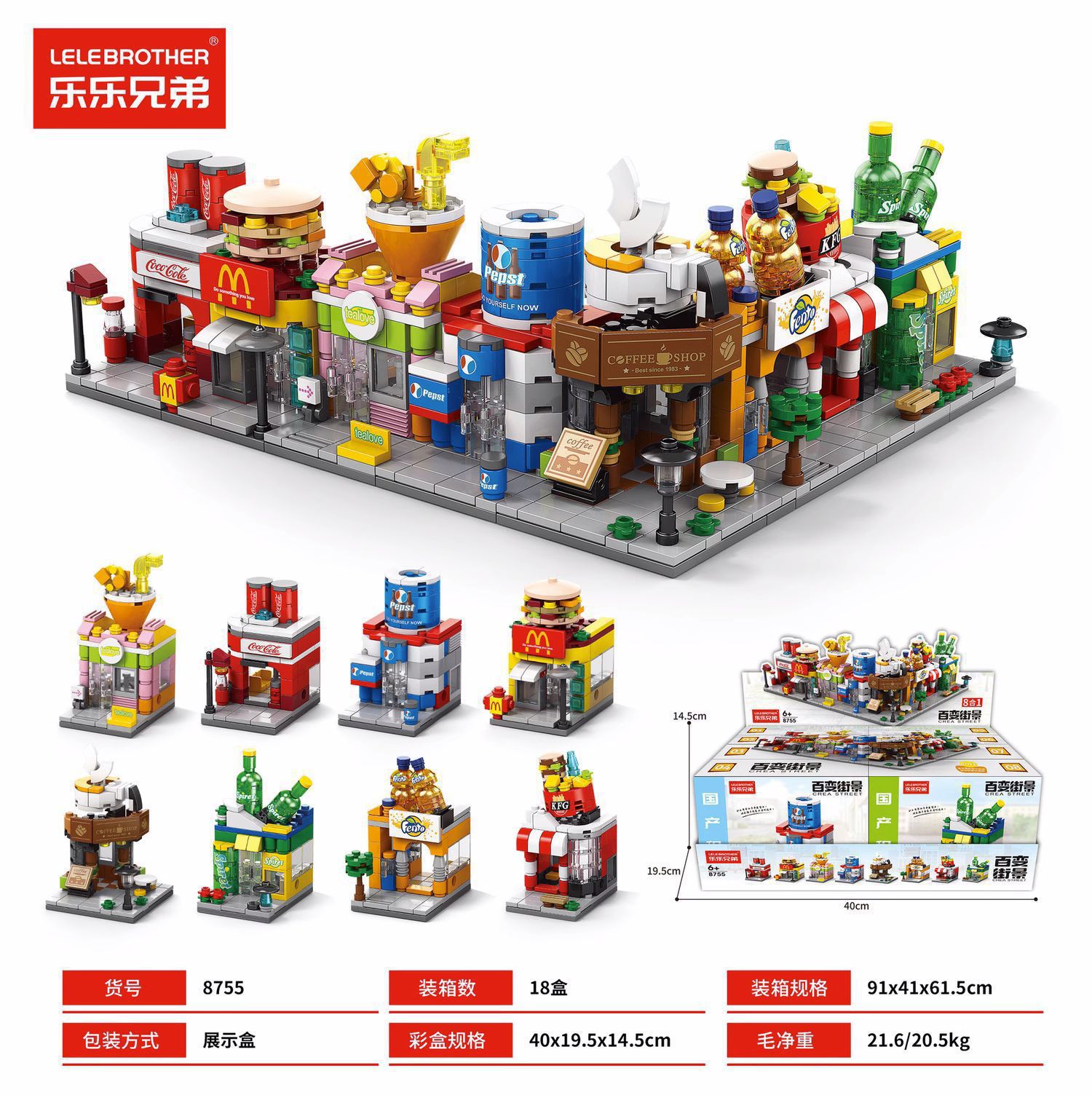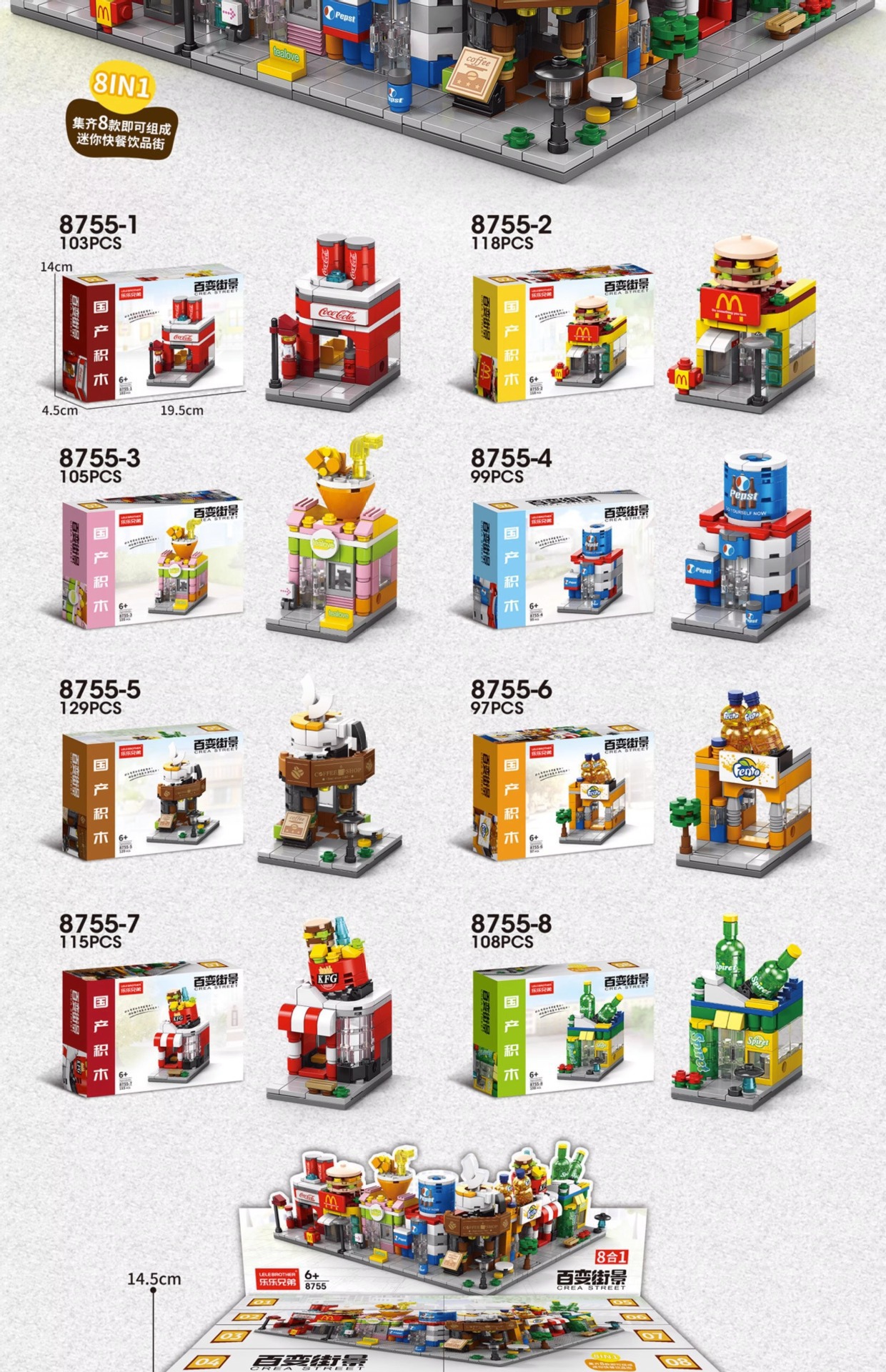 도시 건물 스트리트 뷰 스낵 스트리트 호환 가능한 작은 입자 빌딩 블록 박스형 어린이 교육 조립 장난감 남성과 여성을위한 선물