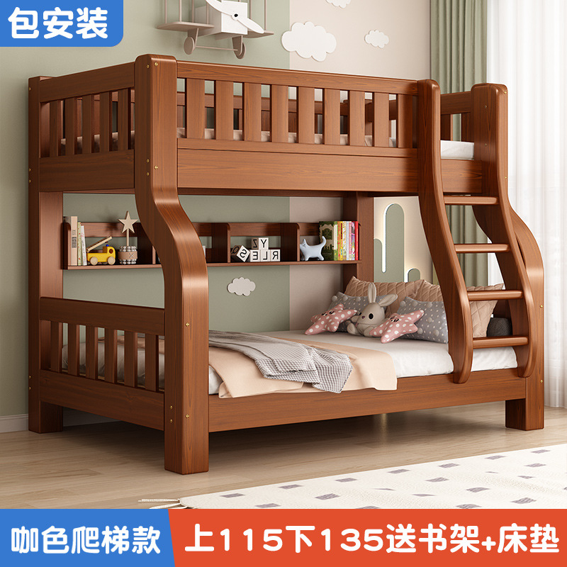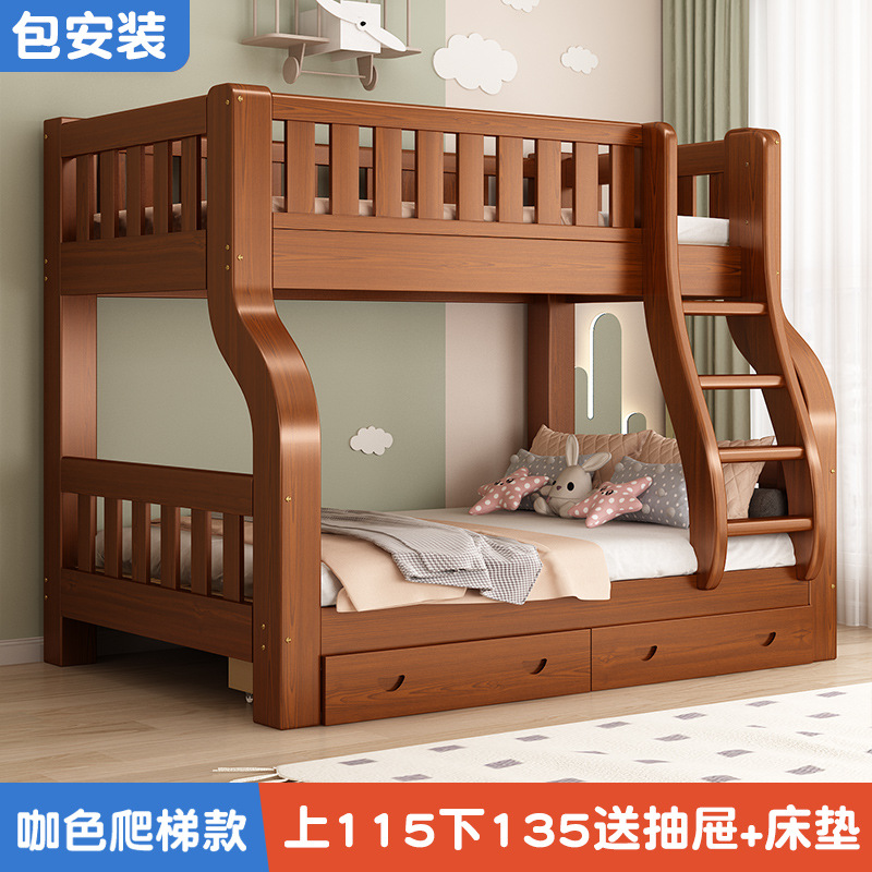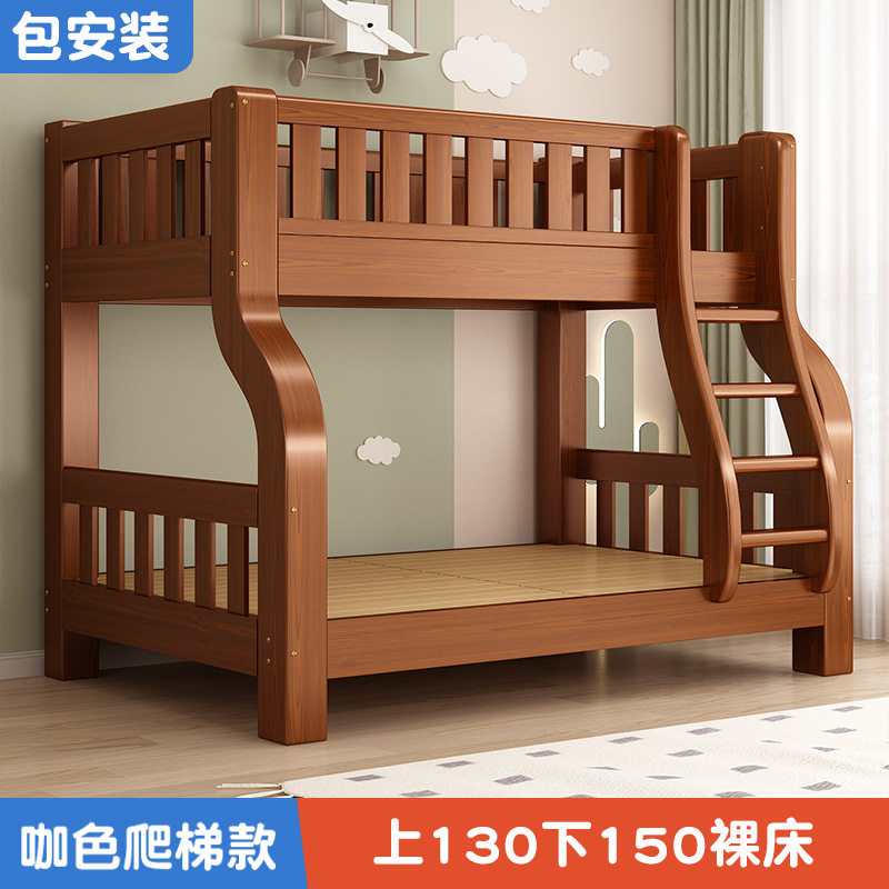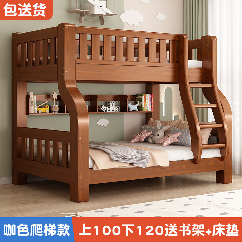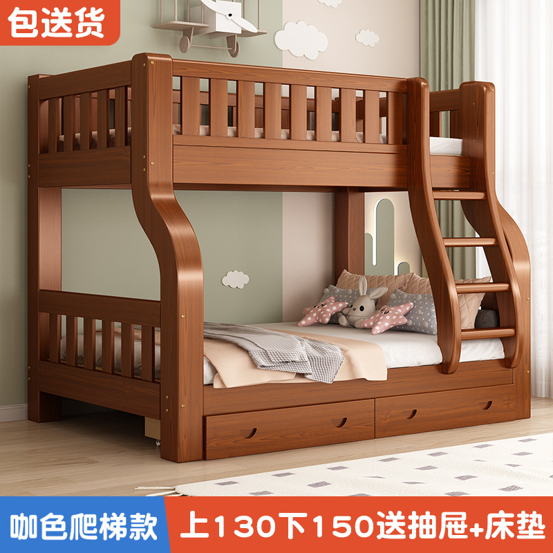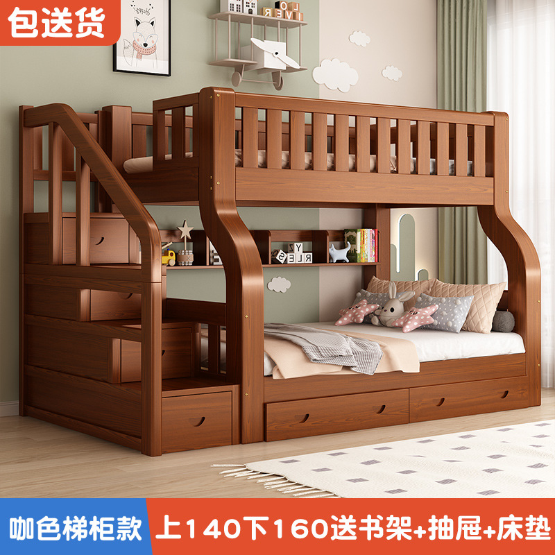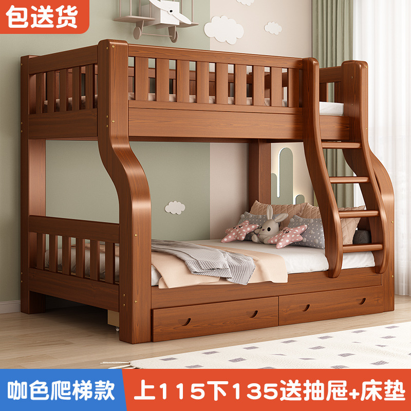 하이 로우 침대 이층 침대 상단 및 하단 침대 단단한 나무 어린이 침대 커피 컬러 다기능 디자인스토어 가기