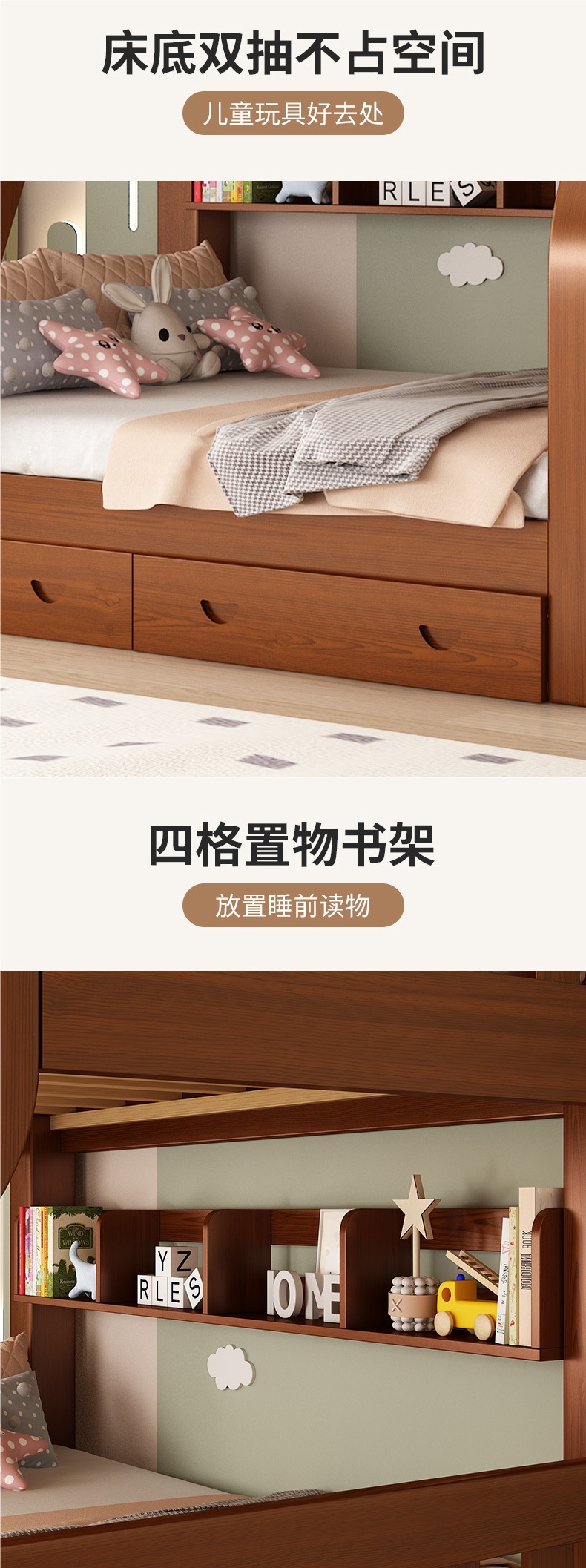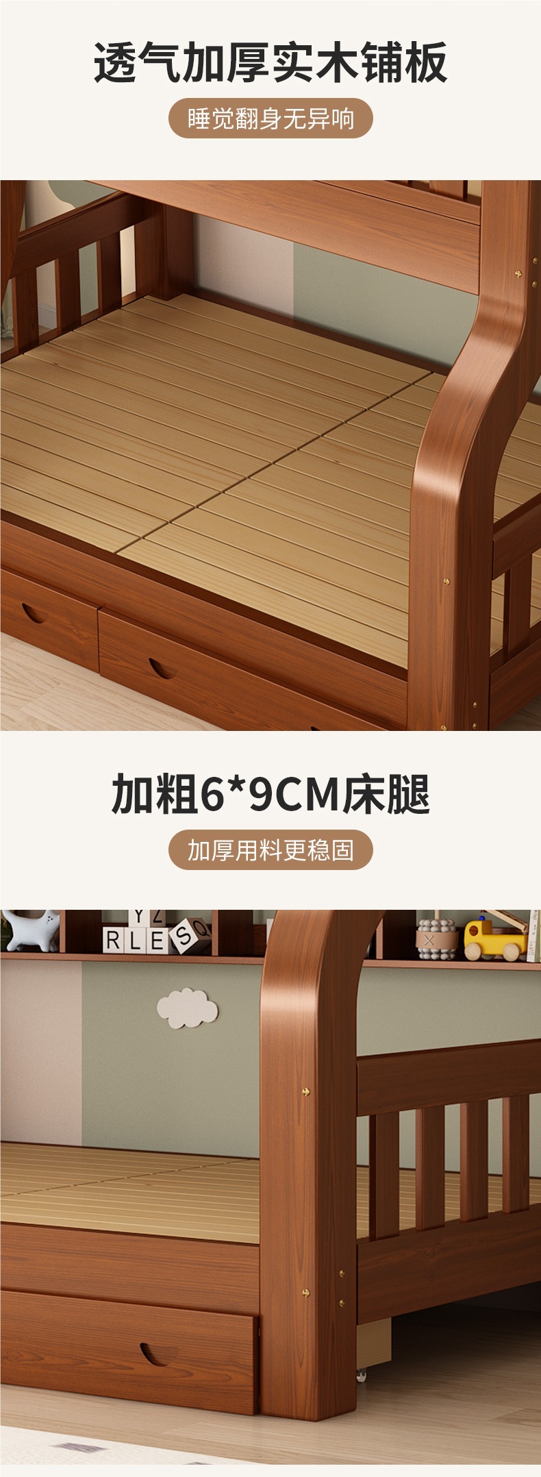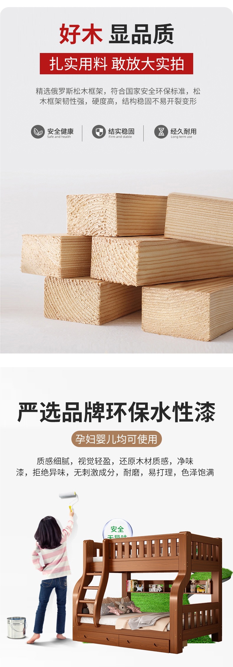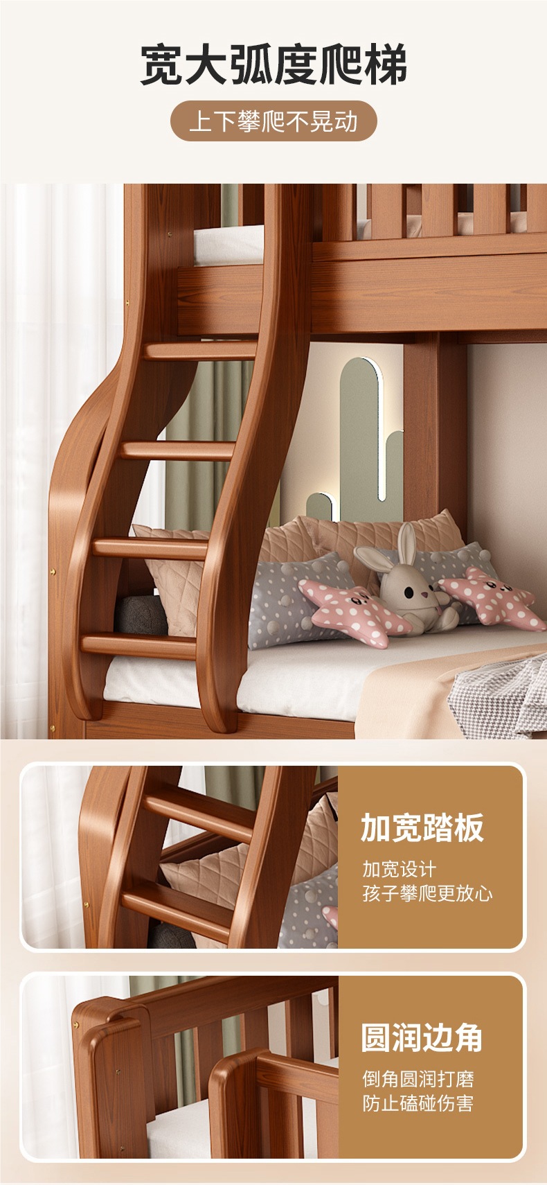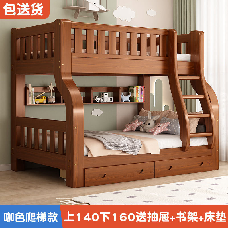 하이 로우 침대 이층 침대 상단 및 하단 침대 단단한 나무 어린이 침대 커피 컬러 다기능 디자인스토어 가기