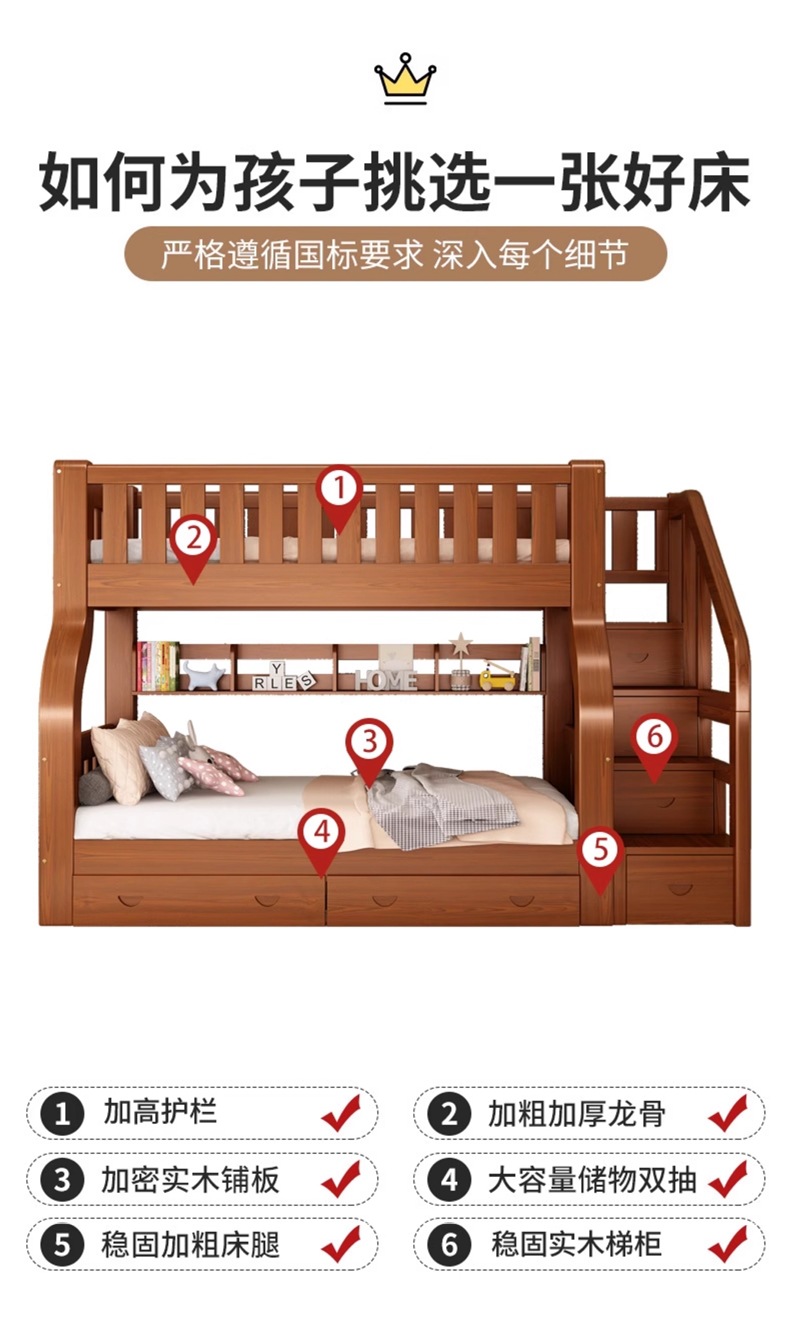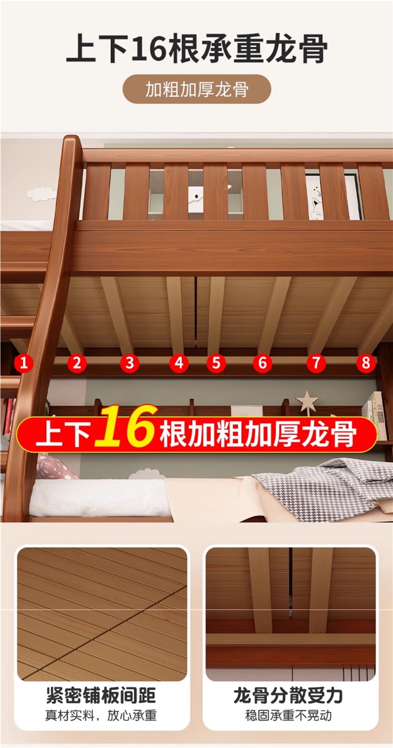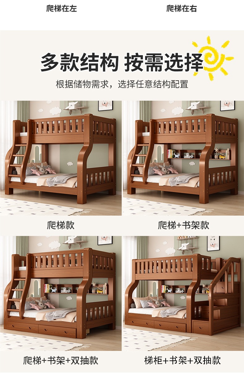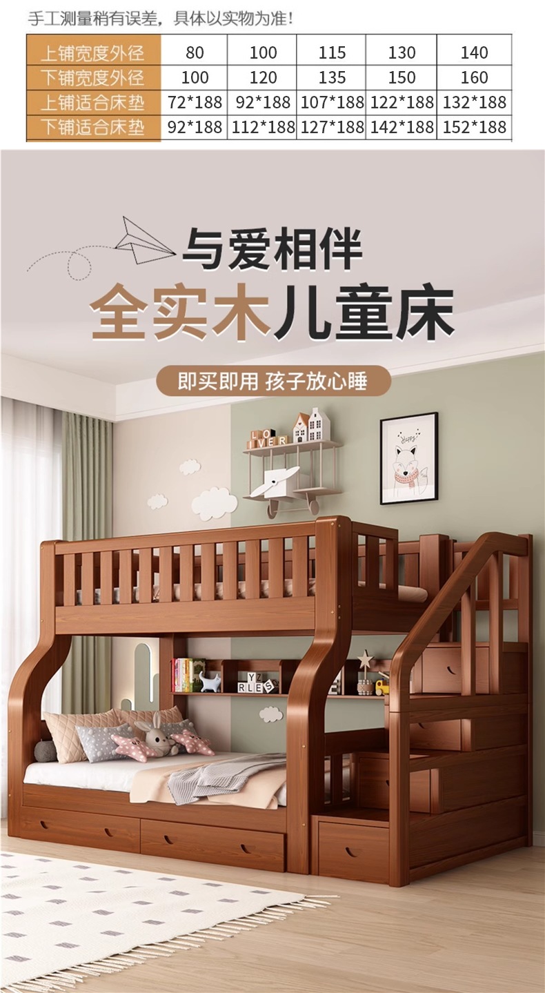 하이 로우 침대 이층 침대 상단 및 하단 침대 단단한 나무 어린이 침대 커피 컬러 다기능 디자인스토어 가기